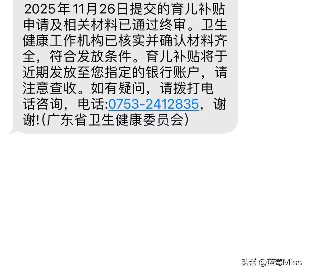 姐妹们,坐标广州,收到了育儿补贴到账的信息,今天入账3600元!来得太突然,太开