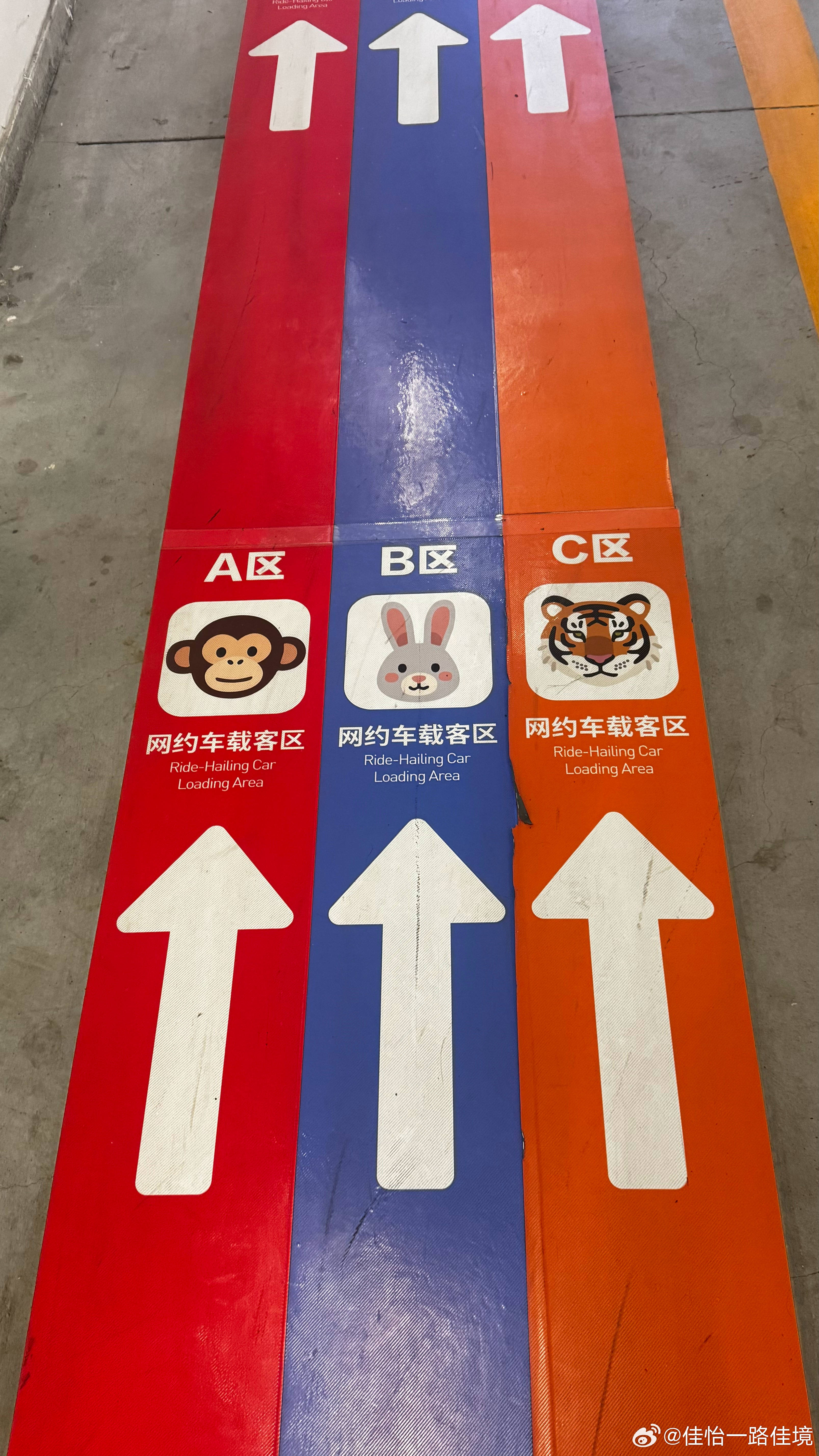 第一次来朝阳站,地上的标识不只有ABC、还额外给到了猴子区、兔子区、老虎区的标识,感觉这个很适合小朋友,如果出了点小状况小朋友和家长走丢了,这样更容易沟通找到。而且这样有趣的氛围,让我今天和师傅沟通起来也相当方便 轻松