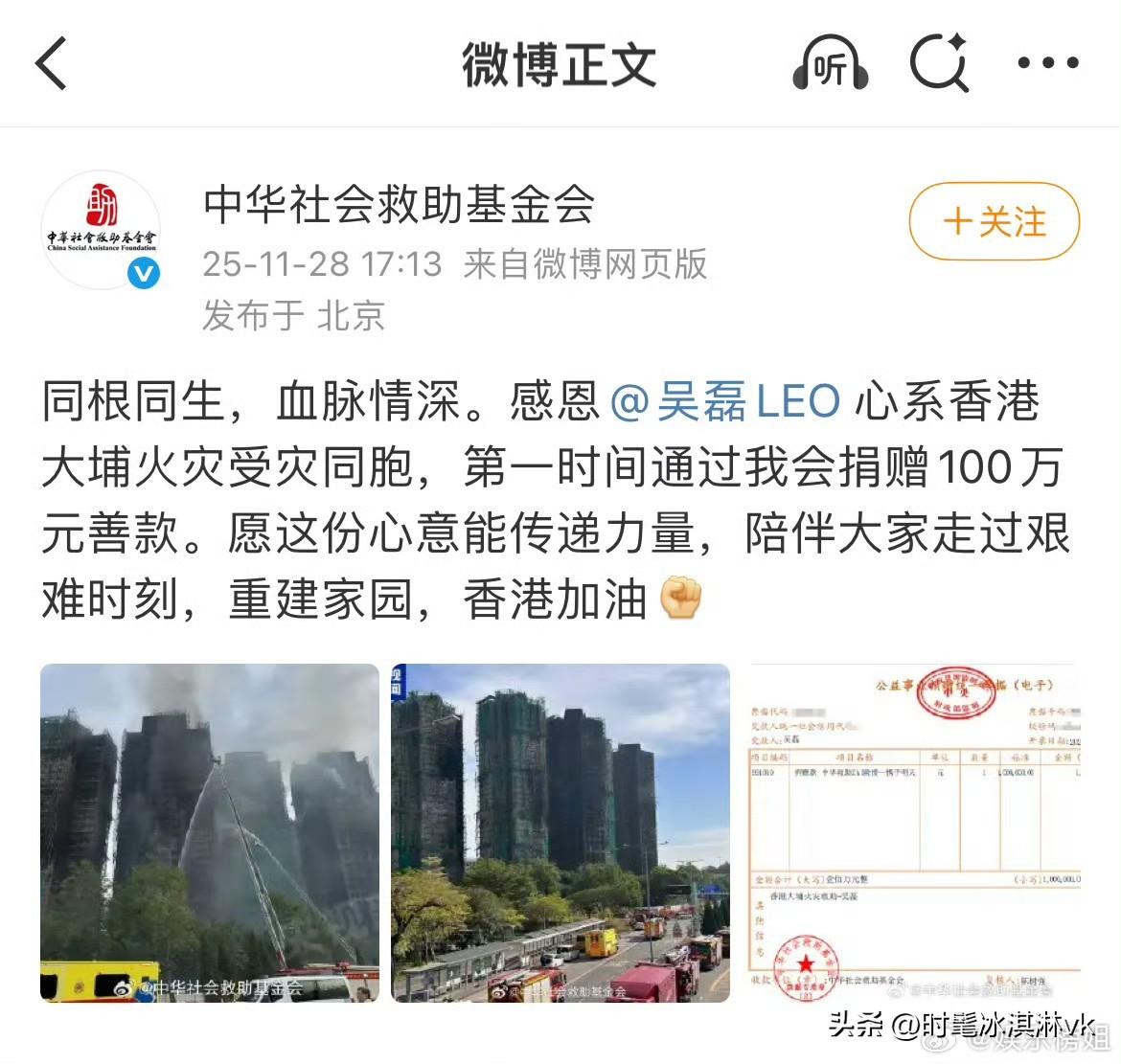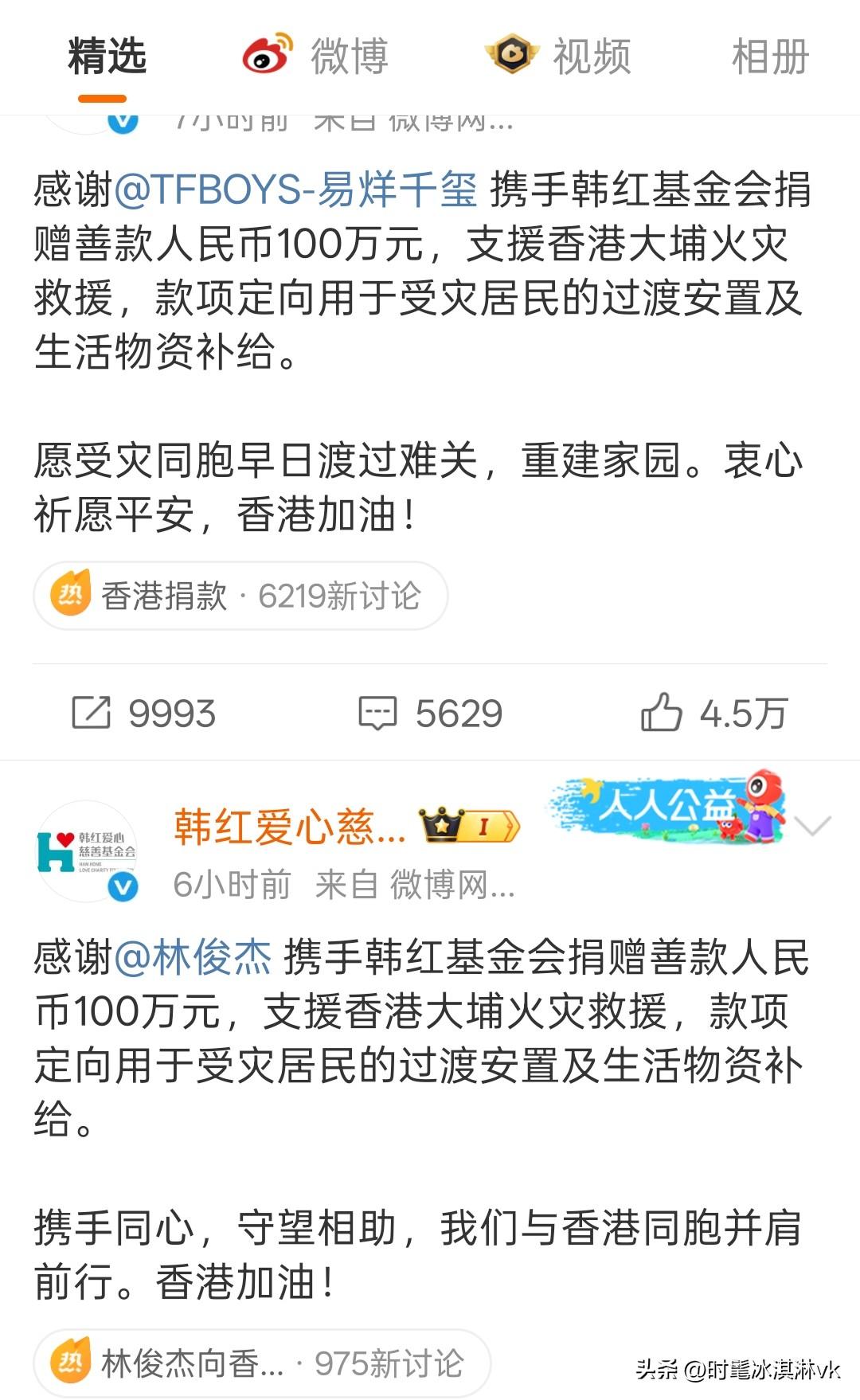 肖战王一博成毅易烊千玺檀健次都是100万的捐[赞] 香港这个大火烧太久了,死亡人数一直在上升,牵动着全国人民的心,特别是有号召力的明星,大部分都是百万百万的捐 肖战捐款100万 王一博也是100万 杨洋100万 檀健次竟然也100万 成毅捐款100万,他明明拍戏还受伤了 谭松韵也是100万 宋佳100万 陈楚生100万 易烊千玺100万 …… 还有很多很多明星都捐款了,还有各种企业也是千万千万的捐,只希望能帮上忙