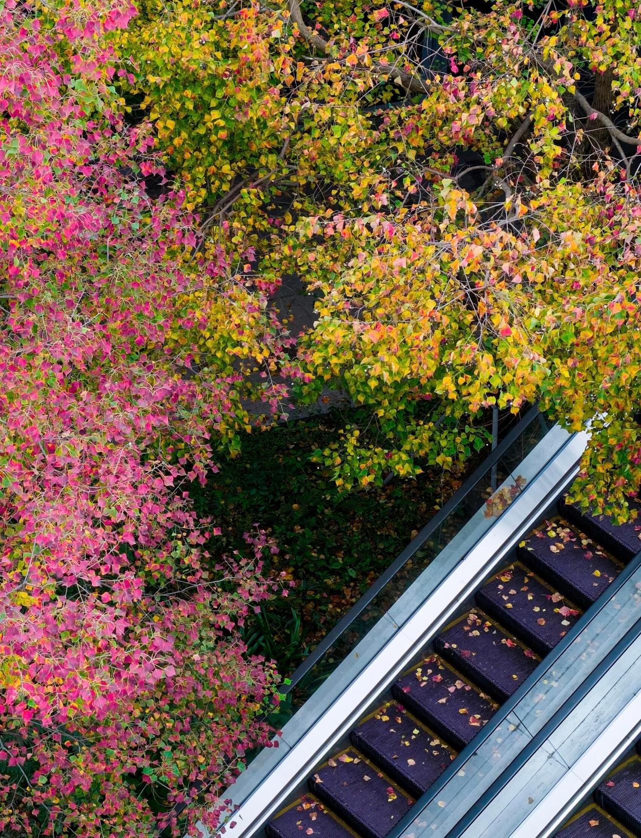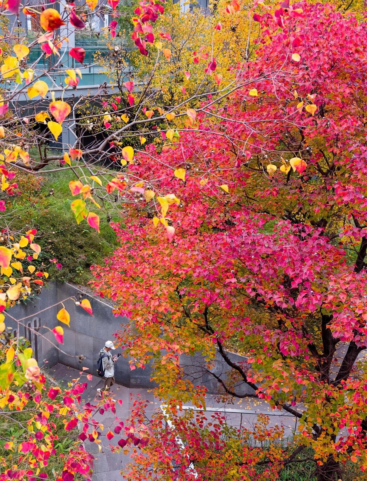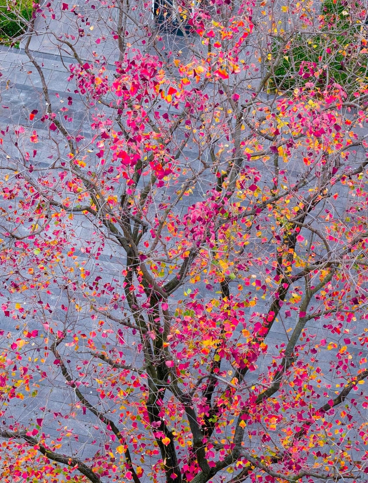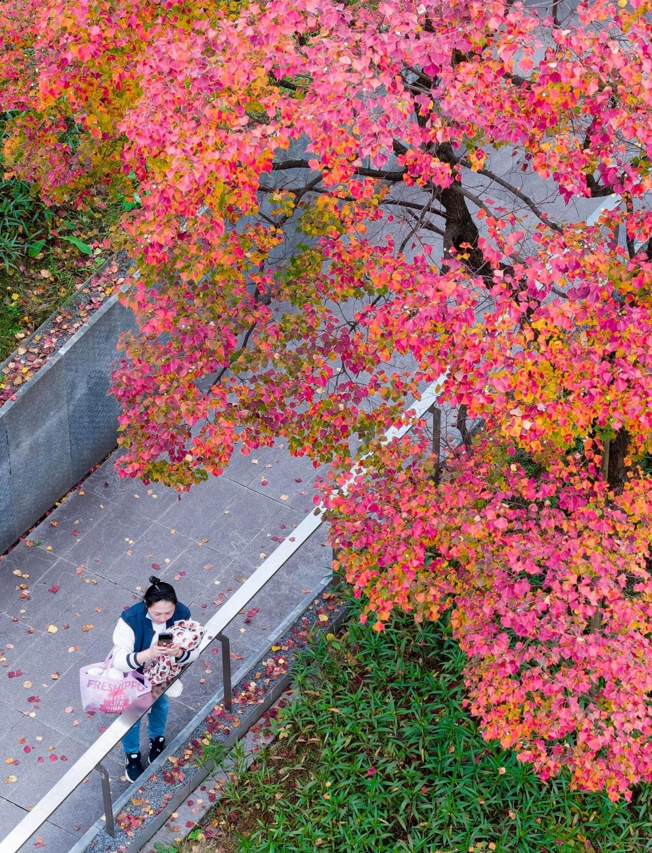 醉美杉河 晨雾漫过水面,日出为落羽杉镀上金边。金红针叶如团团童话小花,在云雾中若