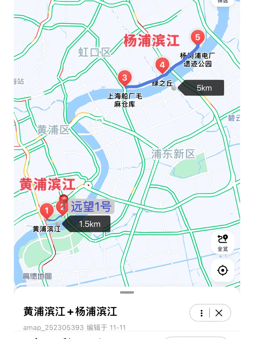 贯通的5km独立骑行道,串联杨浦工业景观。