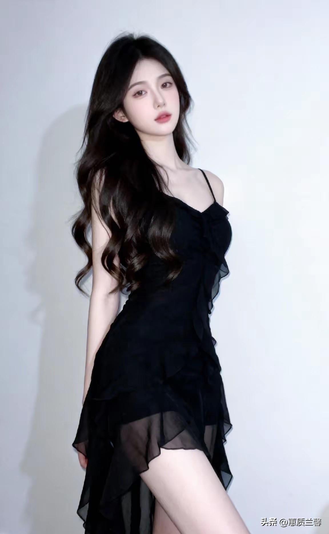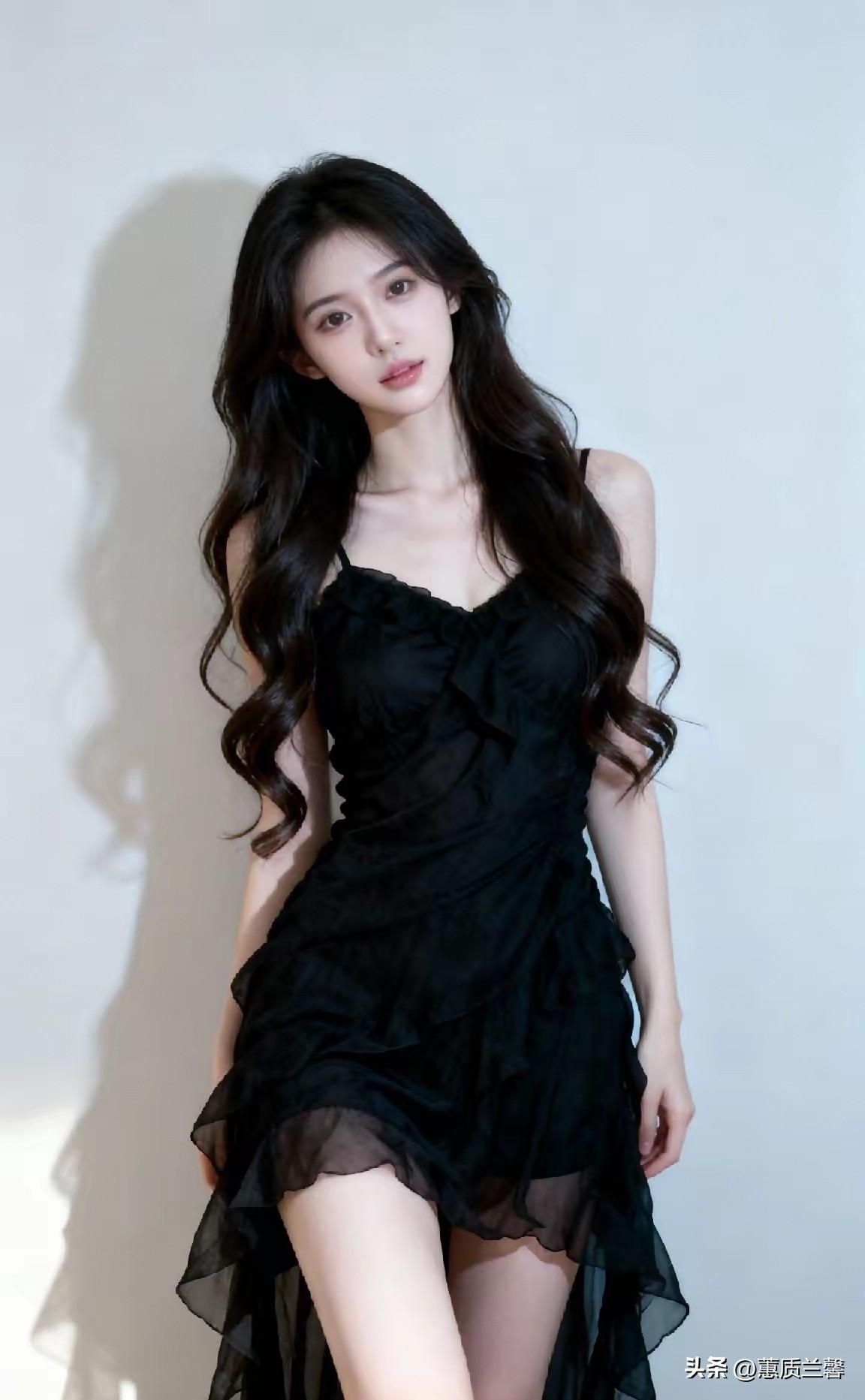 黑色欧根纱吊带连衣裙👗写真! 气质吊带黑裙 温柔风吊带长裙 欧根纱吊带裙