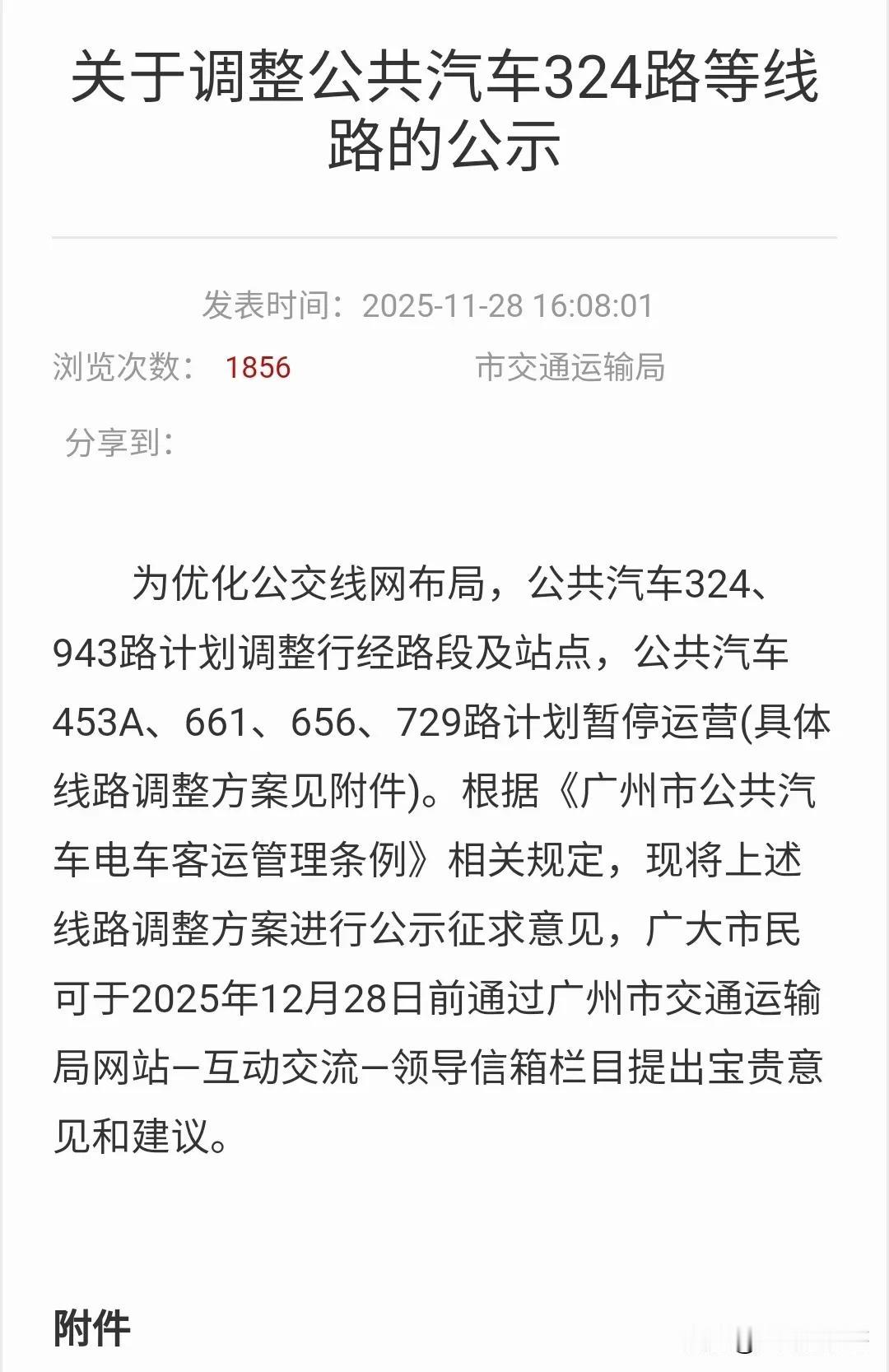 广州周五又上架了几条拟停运的公交线路,看看有你关注的线路吗? 453A沿河路(奕佳公寓)总站环线 661地铁飞翔公园站总站环线 656归城(地铁夏良站)总站--地铁嘉禾望岗站(市八医院) 729地铁西村总站环线 看来改成环线后的客流确实不怎么样,等待它们的结局将是被停运? 按照目前电鸡增长的趋势,每趟公交车上座率在10人左右线路也会越来越多,要是按照这样的标准,什么时候才能优化完成?
