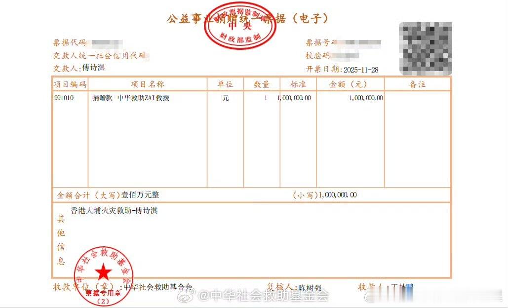 成毅向香港捐款100万成毅捐款100万成毅通过中华社会救助基金会捐赠100万元人民币,用于香港大埔火灾受灾同胞生活安置与后续帮扶,危难时刻始终并肩