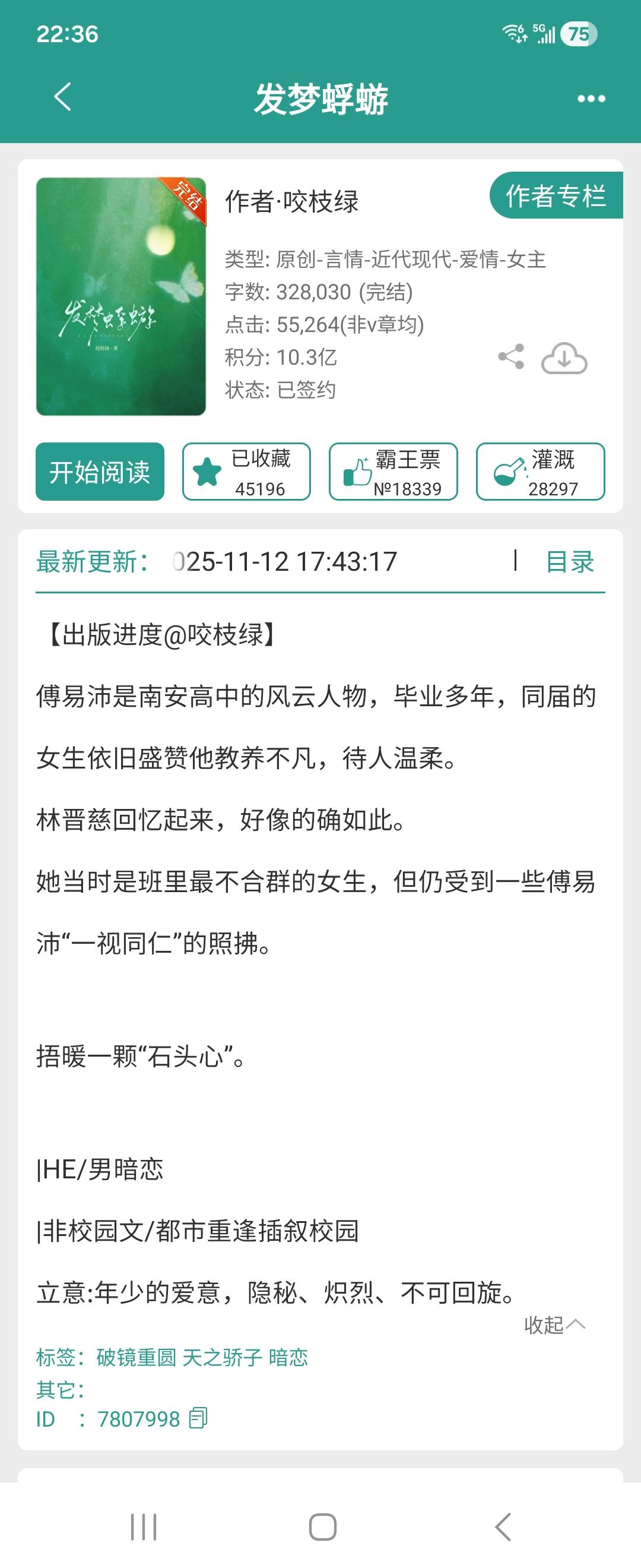 发梦蜉蝣。咬枝绿的文非常有保证。男主太好了