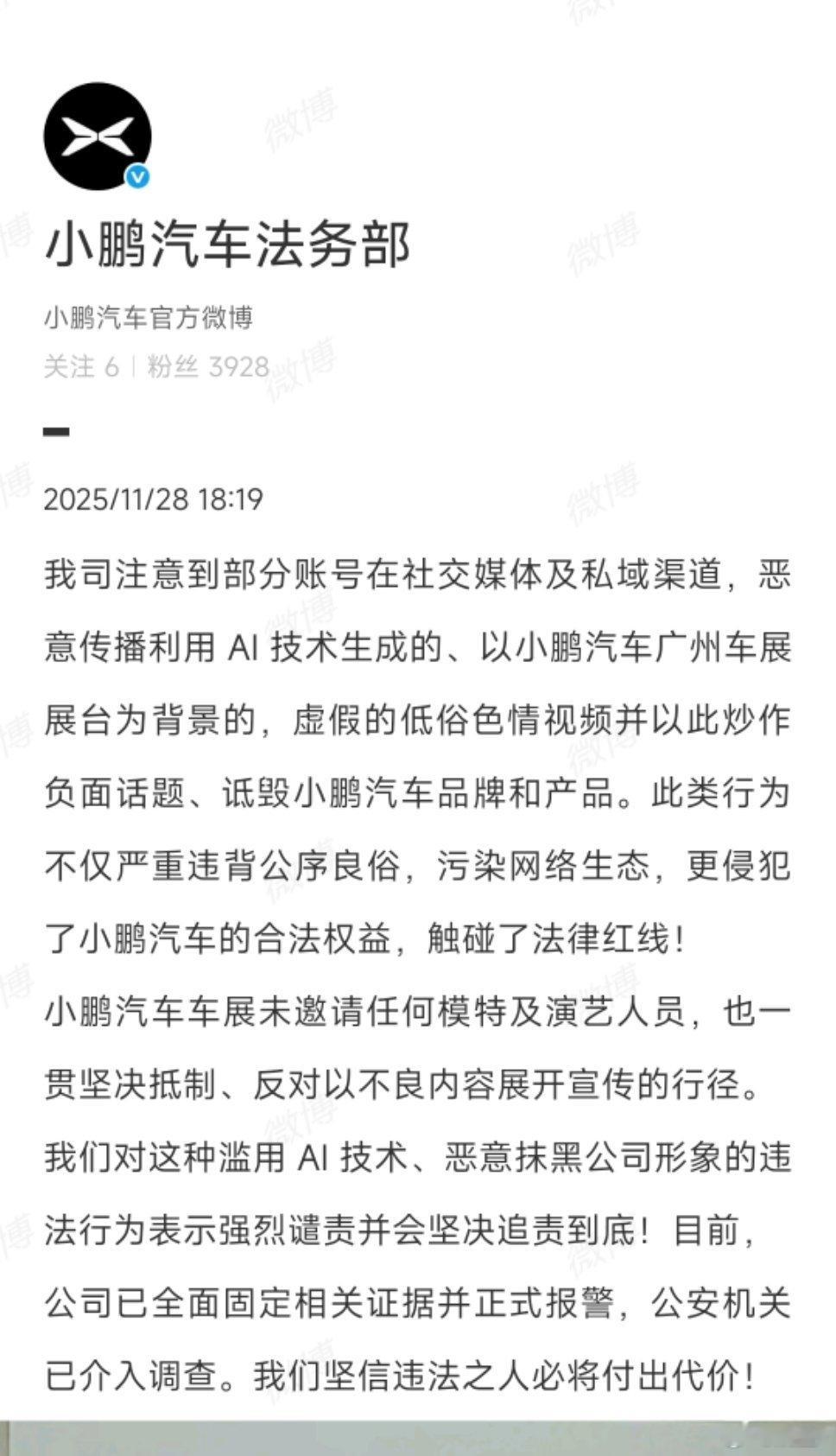 用AI造黄谣真的挺无语……网络不是法外之地😅小鹏报警