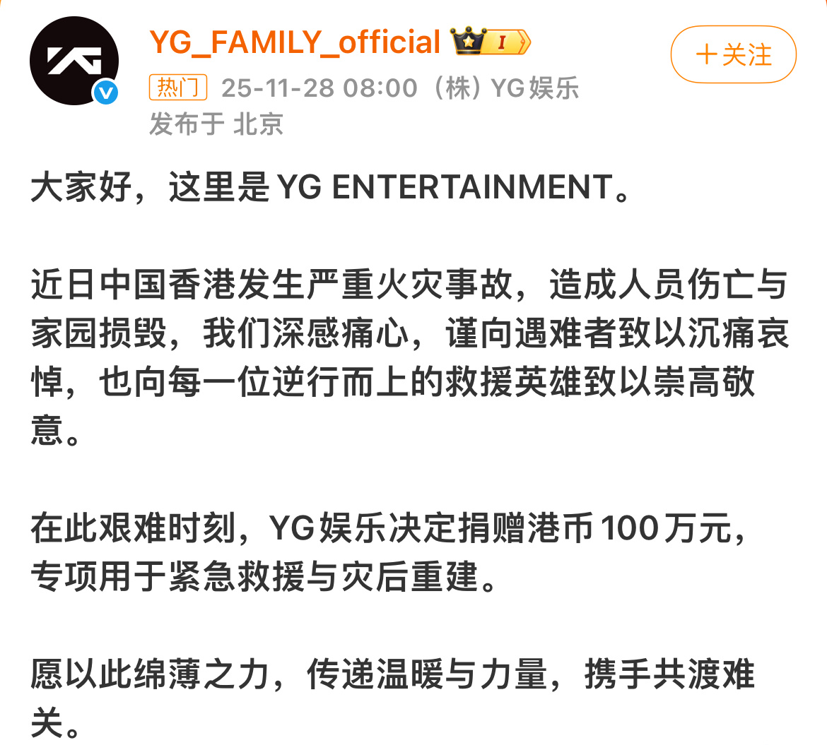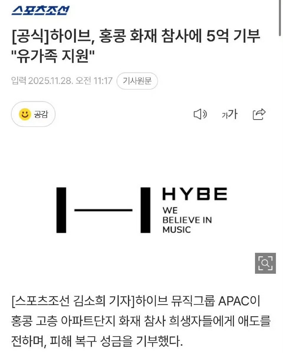 HYBE就你最ex 向韩国机构捐款五亿韩元公告模糊立场 中国香港打全很难吗?