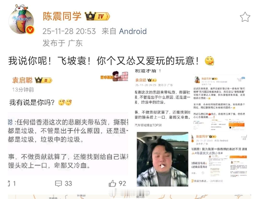陈震 袁启聪袁启聪和陈震吵起来了,似乎网友不太支持某人