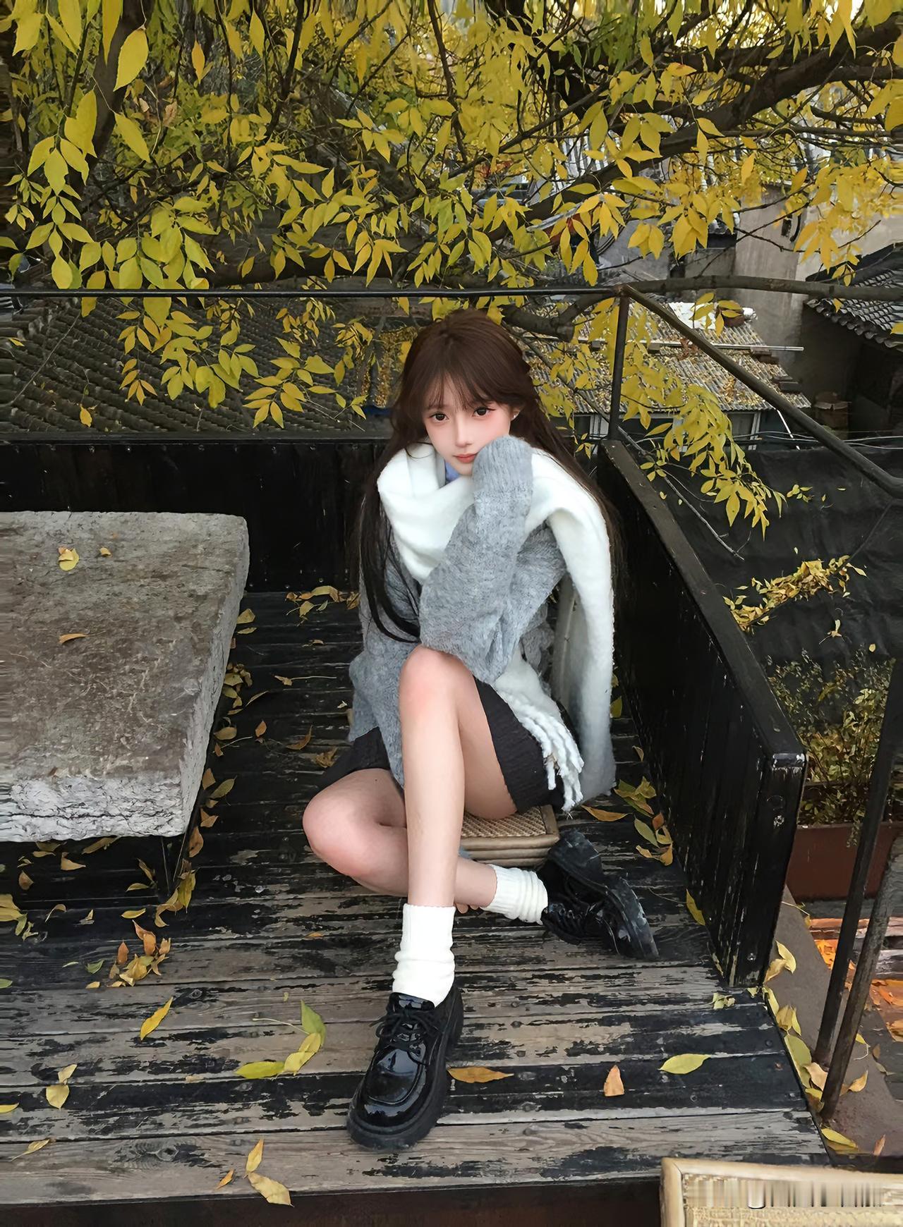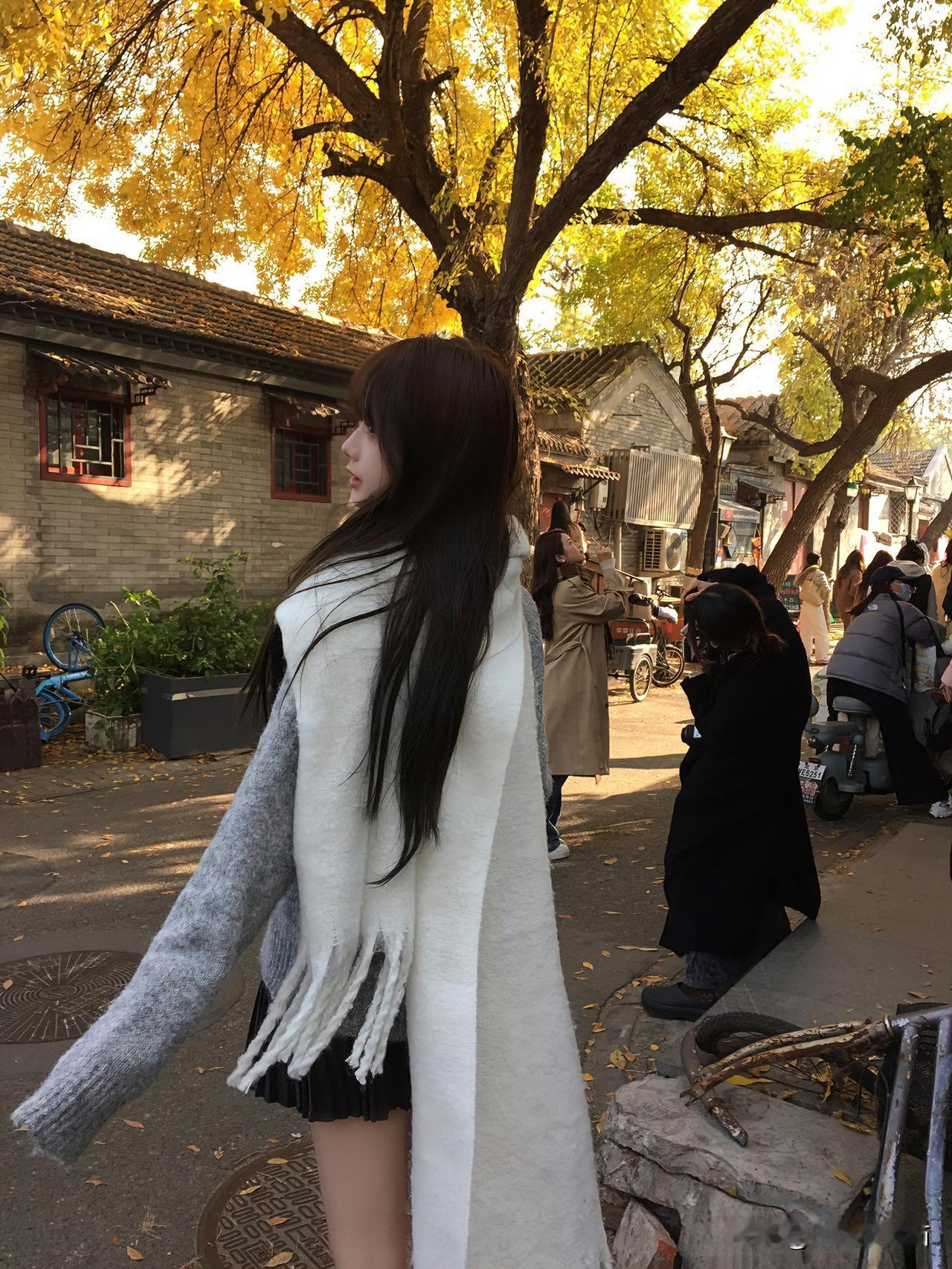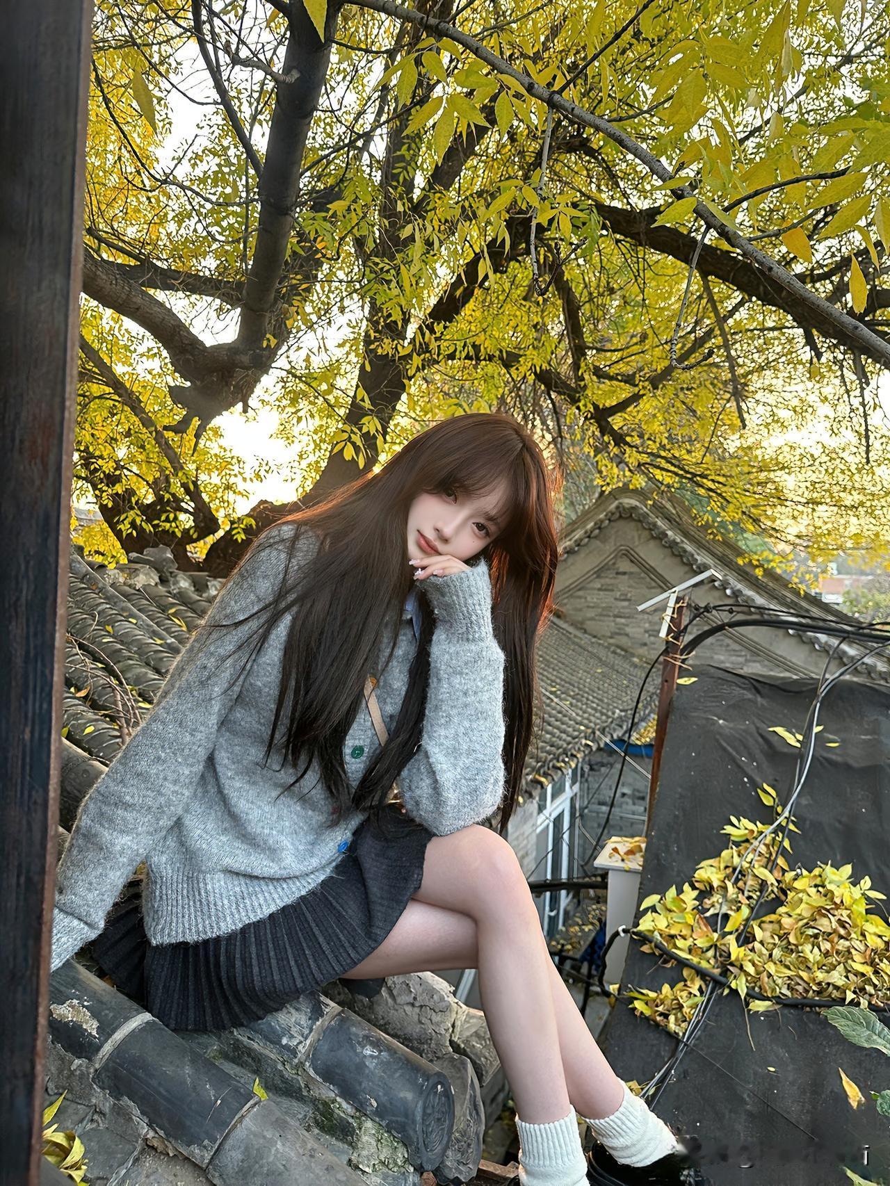 北京的秋,银杏落满胡同,金箔铺就青石板。裹着灰毛衣、白围巾静坐屋檐下的她,阳光穿过叶隙,在灰瓦上织就斑驳光影。 这短暂的秋意,却将老城的诗意与烟火,都酿成了时光里的温柔。 晒晒少女靓影 分享美女穿搭服饰