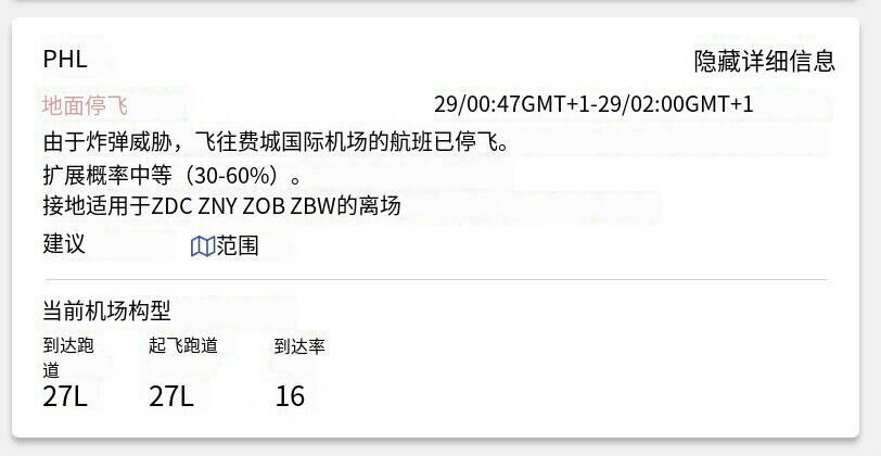 美国联邦航空局(FAA)表示:因受到炸弹威胁,飞往费城国际机场的离港航班已被实施
