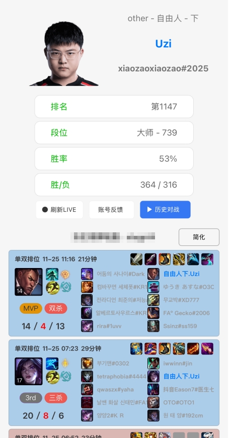 换号了?还是过完瘾了?连续被传将复出后,Uzi已经四天未登上韩服帐号
