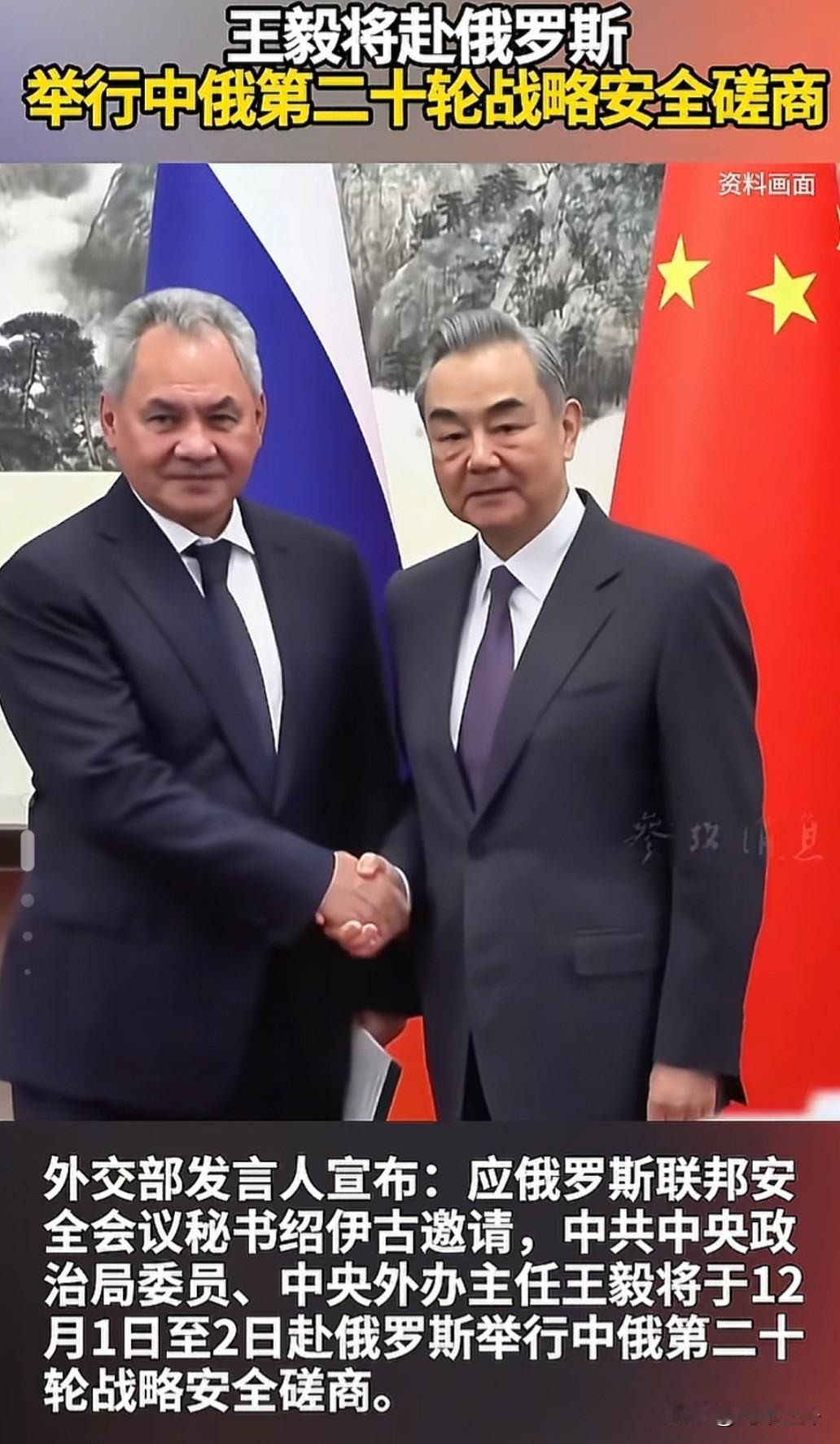 关键时刻的战略默契!中俄这场磋商,给动荡世界定调 11月28日外交部官宣的消息,信息量十足——王毅主任12月赴俄参加中俄第二十轮战略安全磋商,这哪是普通外交互动,分明是大国在乱局中锚定安全的“定心丸”。 当下的世界有多闹?北约东扩没停步,“印太战略”搅局不断,AI、太空等新兴领域成了军事博弈新战场,连核潜艇合作都在冲击核不扩散体系。单边霸权搞“绝对安全”,实则把世界推向分裂对抗,这时候中俄“背靠背、肩并肩”的协作,太关键了。 这场磋商绝不是摆样子,而是实打实的战略对接:从传统安全到网络、生物安全,从地区热点到全球治理规则,都是要谈的核心。中俄不搞排他性同盟,而是用“共同安全观”破局,拒绝“牺牲他国安全换自身优势”的霸权逻辑,这正是动荡世界最需要的稳定性。 越是乱局,越见战略清醒。中俄持续深化战略安全磋商,既是守护各自核心利益,也是给国际社会立起“多边协作”的标杆。毕竟,在霸权搅局的当下,只有攥紧安全合作的“拳头”,才能让和平多一分底气,让挑衅者多一分敬畏!
