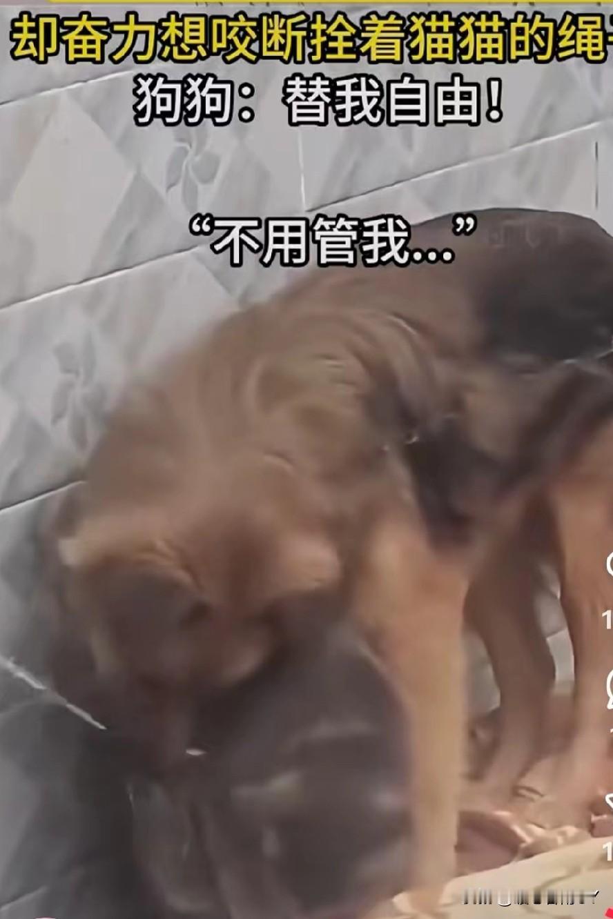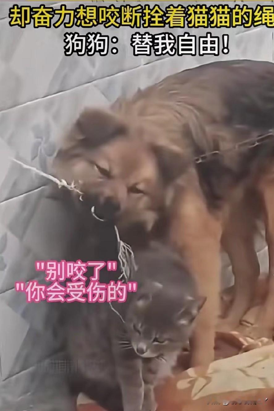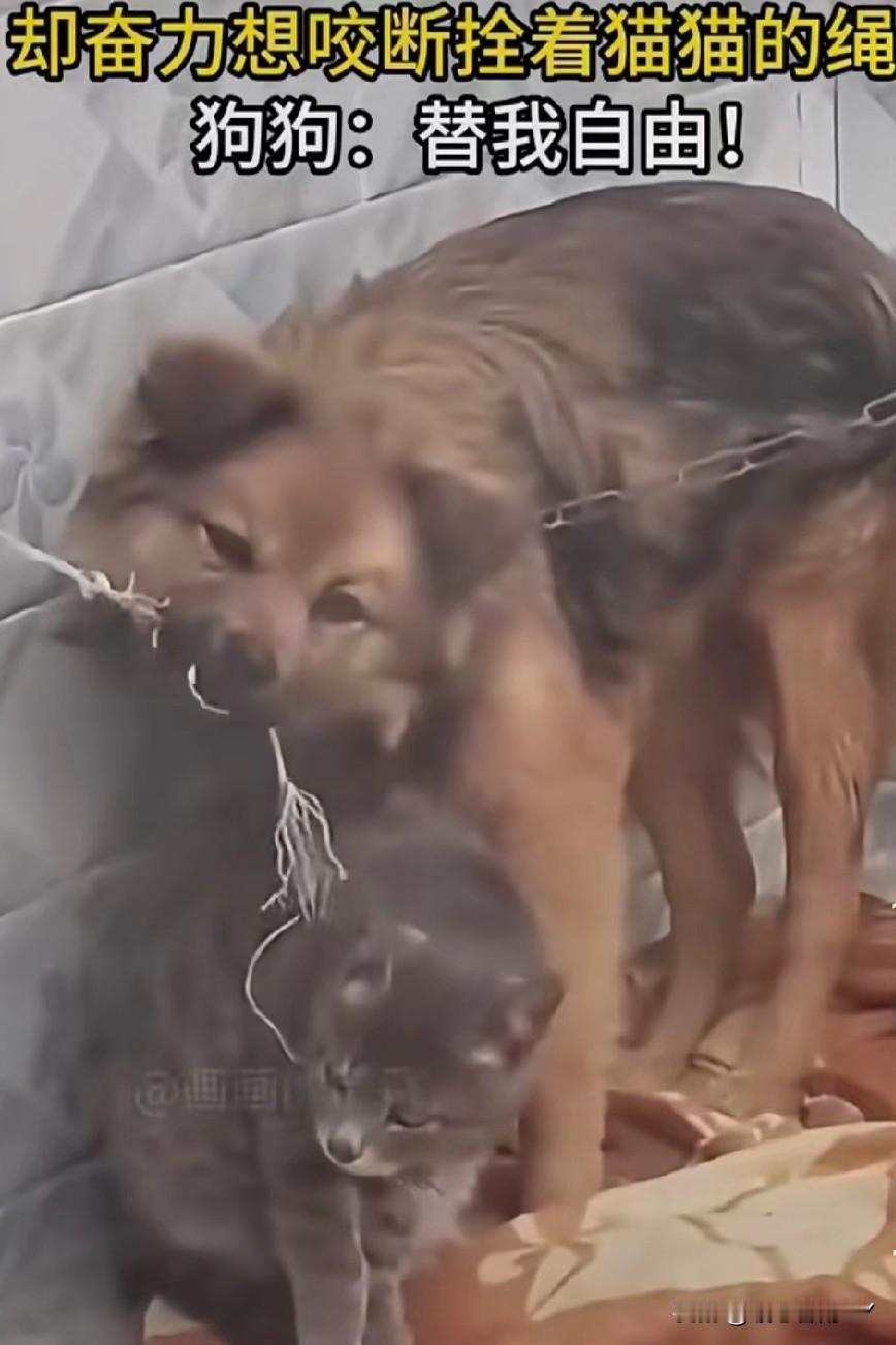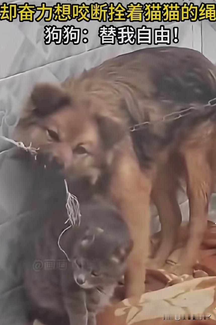 看到这只被铁链牢牢拴住的狗狗,正拼尽全力去咬断拴着小猫的绳子,我突然鼻子一酸…… 这只狗狗自己都困在原地,却把所有力气都用来给小猫争一条生路~ 就像生活里那些自己过得不算轻松,却总想托别人一把的人,他们没说过什么漂亮话,只把能给予的温柔,都揉进了质朴的动作里。 原来“我淋过雨,所以想给你撑把伞”的温柔,小动物也懂。 愿所有被束缚的温柔,都能迎来真正的自由。创作训练营开营啦 冬日生活打卡季 猫咪一刻