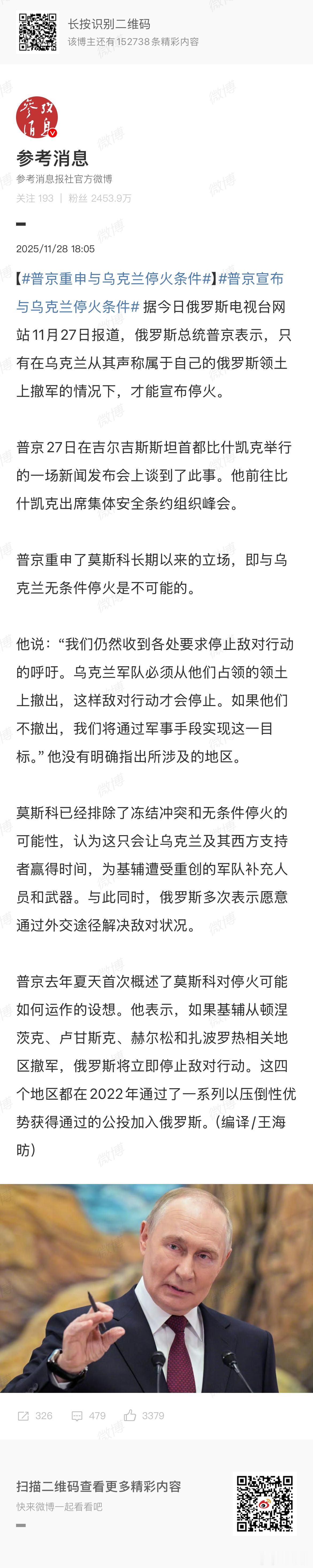 普京宣布与乌克兰停火条件说好了1小时22分侵略成功的……