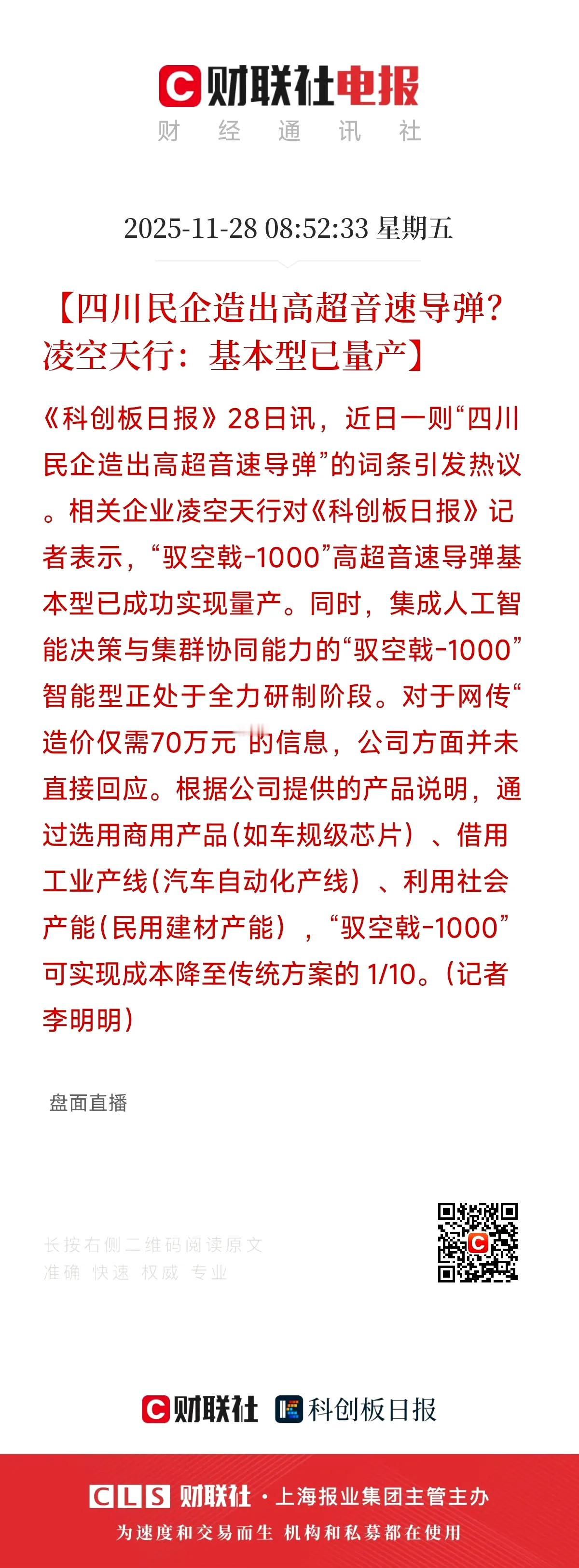 我的天!四川民企研发的这个高超声速导弹已经量产了,几天前看到发布视频还以为正在研发中呢,没想到这就已经量产了。 懂得都懂,这就是打鬼高超快乐蛋,射程500至1300公里,对鬼子无死角覆盖;成本更是低到令人不敢相信,百万元以下一枚,许多配件都是民用级别的通用配件,量大管饱完全不是问题。 以前都说把鬼子用火炮犁一遍就老实了,现在可以改为:用高超快乐蛋犁一遍了,这样鬼子至少能老实五百年了吧!