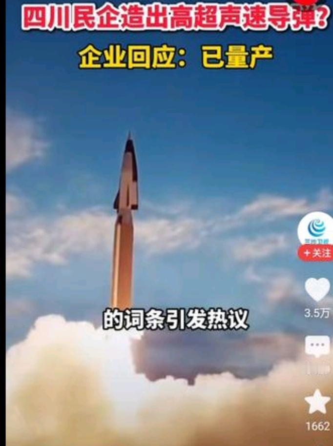 山东面条厂造飞机,四川民企造超音速导弹。 飞机成本只是几万元人民币,而且还销售了好几架。 而四川民企的导弹,可以超音速5马赫以上的速度打击500公里至1300公里的目标。而他的成本,不过是常规导弹的几十分之一。 啧啧,厉害不?中国民企真是藏龙卧虎啊。 其实,类似这些民营企业应该还有许多。他们制造的高尖武器,怕不只这些。凡是保家卫国需要的,他们恐怕都能制造出来,而且快速量产,快速装备。 四川民企的导弹已经量产了,也不需要专门的发射平台,好用实用又价格低廉,而且还能一发入魂,就问那些对我们怀有敌意的国家,你们怕没?