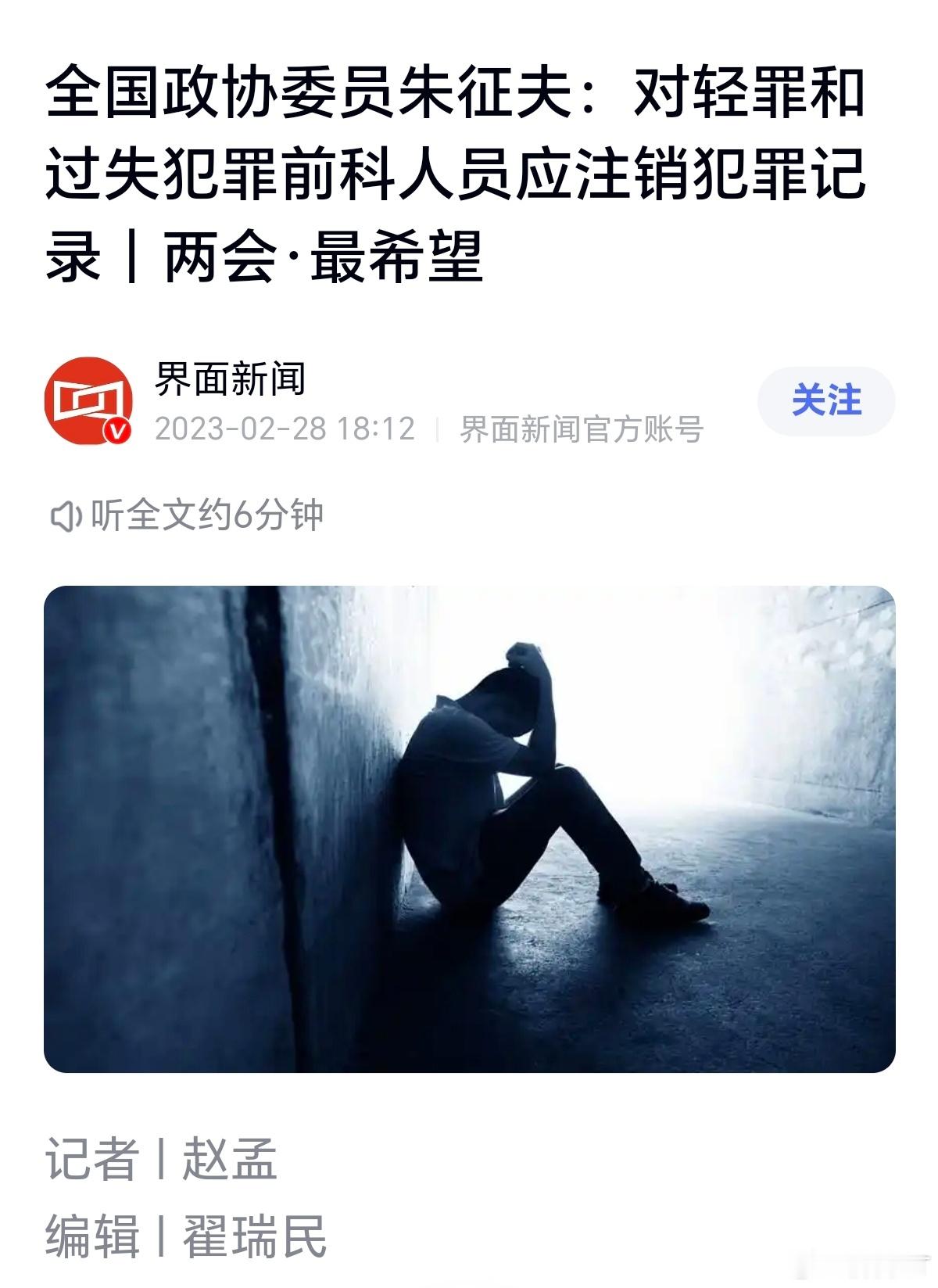 原来这个朱征夫,也是武汉大学的。在我的印象里,他最出名的提议就是建立轻罪前科封存制度。此外还曾建议取消寻衅滋事罪,以及修改国籍法,理由是有有外国国籍不等于不爱国。
