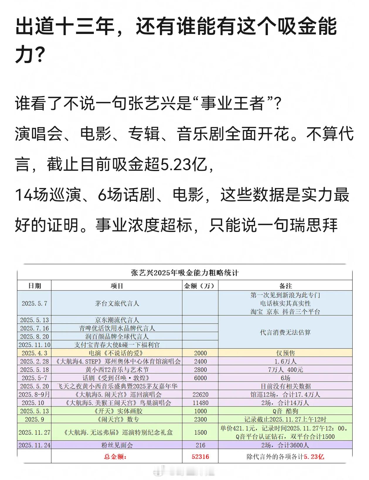 张艺兴确实全面开花,有星光有号召力,粉丝也长情能氪,火火的很安心