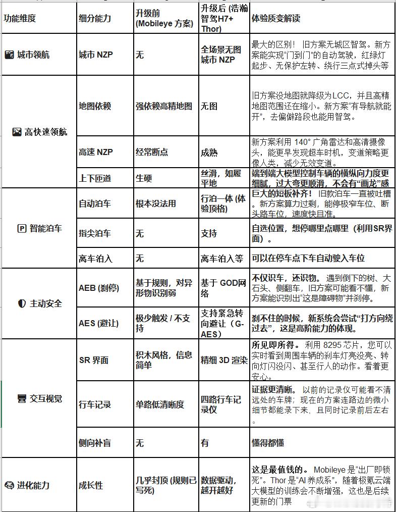 关于24款极氪001 更换智驾方案各方面的提升,与现有方案的对比图,希望对24款车友做决定的时候有帮助。极氪