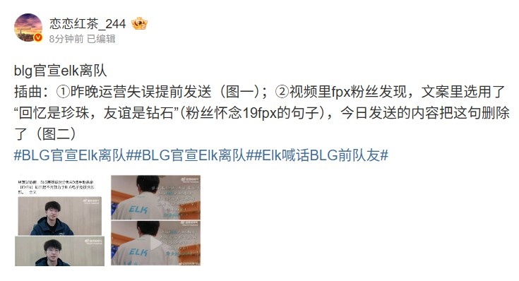 小插曲!?昨晚运营失误提前发布Elk离队 今日内容还删除了一段话
