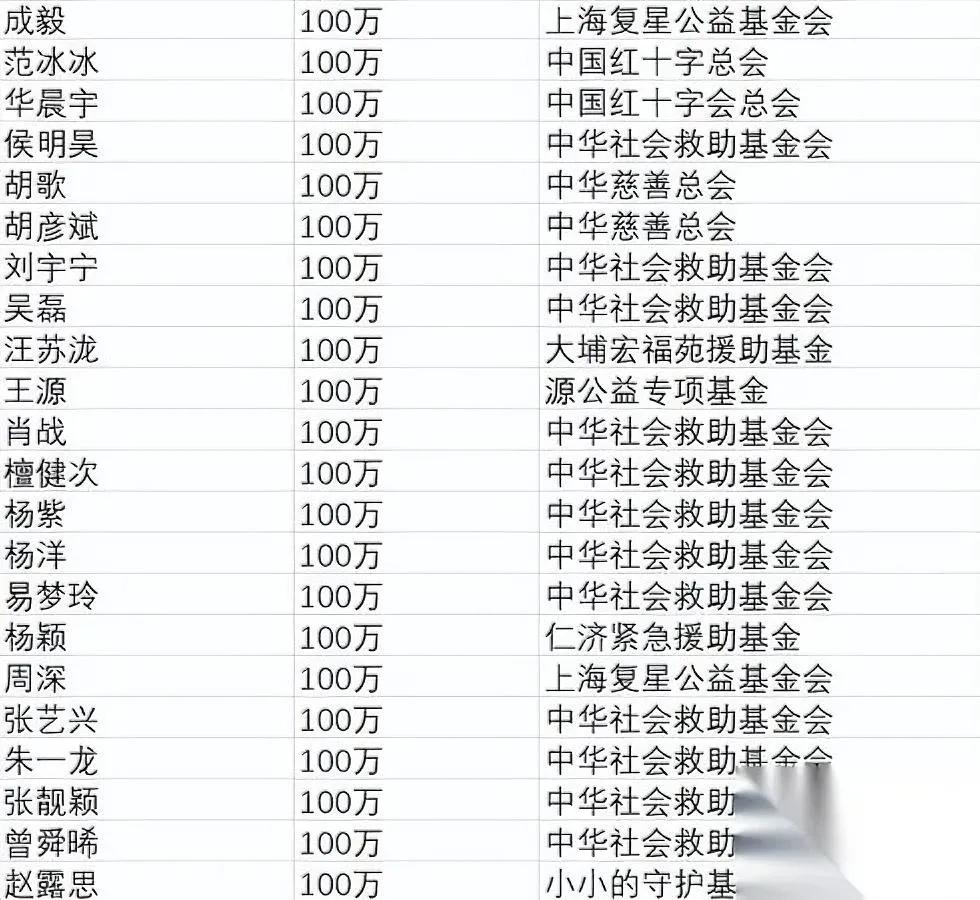 明星捐款速度有多快? 韩红带头后名单爆了! 这次香港大埔火灾救援,演艺界简直开启“爱心加速模式”。韩红基金会率先砸下1000万,直接点燃明星接力潮:陈楚生、王一博等7位艺人各跟捐100万,12位明星合捐735万,光韩红基金这条线就超2400万。更有意思的是,明星夫妻档集体撒糖式捐款:陈小春应采儿、张杰谢娜等四对夫妇各捐100万,连韩庚卢靖姗都默契捐了50万,这波“爱与公益齐飞”太圈粉。 内地明星更是火力全开,肖战、杨紫等二十多人直接甩出“百万档”,宋茜、吴宣仪等也用60万、50万彰显心意。香港艺人同样不含糊,甄子丹、邓紫棋捐100万港币,杨千嬅更狠,直接押上红馆首场演唱会收益。最意外的是韩国四大娱乐公司也来插旗:JYP、SM各捐百万港币,HYBE砸出5亿韩币,这场面妥妥的“亚洲明星公益联动”。 截至目前,近百位艺人捐出超8100万,与其说这是一串数字,不如说是娱乐圈的“担当体检”。当头部明星用百万级响应树立标杆,当跨国艺人用行动打破地域界限,我们看到的不仅是灾难面前的守望相助,更是公众人物该有的社会温度。你觉得,哪笔捐款最让你破防?