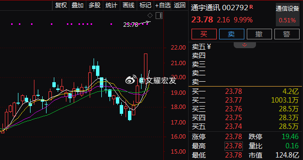 $通宇通讯 sz002792$ 涨跌幅:9.99%(2天2板)板块异动原因:太空算力个股异动解析:卫星通信+投资“凌空天行”+蓝箭航天卫星通信核心标的,具备全链条能力公司是卫星通信领域核心企业,2024年相关业务收入已超4000万元。其产品线完整覆盖“星-地-端”全产业链,具体包括星载有源相控阵天线、地面站终端(如卫星动中通天线)及终端应用。市场拓展方面,公司于2025年10月成为上海电信卫星地面终端项目的中标候选人,标志着其技术实力获得主流运营商认可。前瞻投资高超音速技术,切入航天尖端领域2025年11月25日,高超音速技术企业“凌空天行”发布新型导弹产品。公司通过旗下天空产业基金(持股99.95%)计划出资1亿元对其进行投资。标的公司专注于高超音速飞行器、航天发动机等前沿技术的研发,其创始人王毓栋先生曾任中国运载火箭技术研究院国家重点工程副总师,并主导了“天行”系列可重复使用火箭的研发工作,技术背景深厚。携手头部火箭公司,布局低轨卫星互联网公司与国内领先的民营火箭公司蓝箭航天共同投资了低轨宽带互联网卫星公司——蓝鸿鸣鹫。自参股以来,双方始终保持密切的沟通与合作,共同卡位太空互联网这一战略赛道。主业根基稳固,通信业务占比97%公司基本盘稳固,通信天线及射频器件业务收入占比高达97%,主要产品包括基站天线、射频器件、微波天线等,为当前业务提供了稳定的现金流和产业基础。