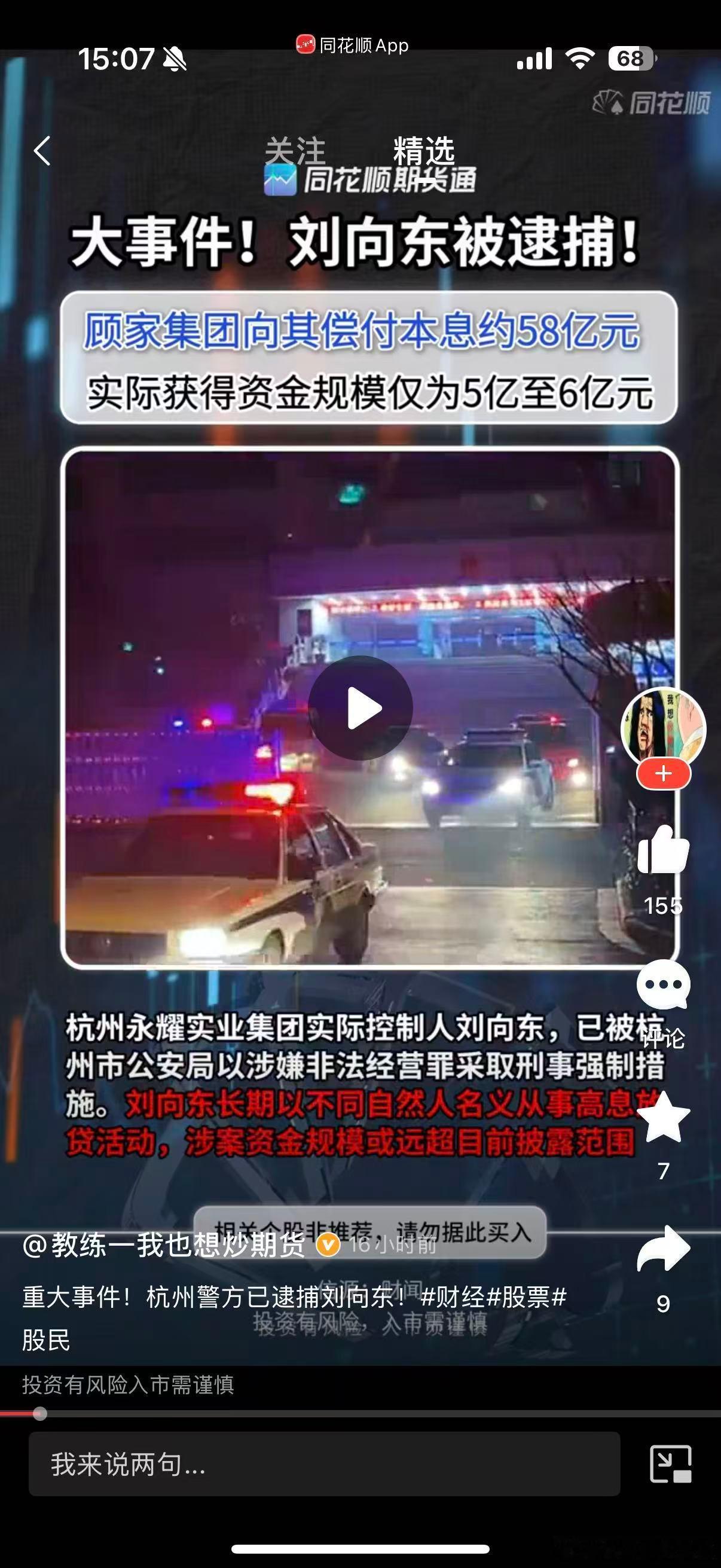 杭州市公安局西湖区分局于2025年11月28日对杭州永耀实业集团实际控制人刘向东采取刑事强制措施,罪名涉嫌非法经营罪。刘向东被采取刑事强制措施