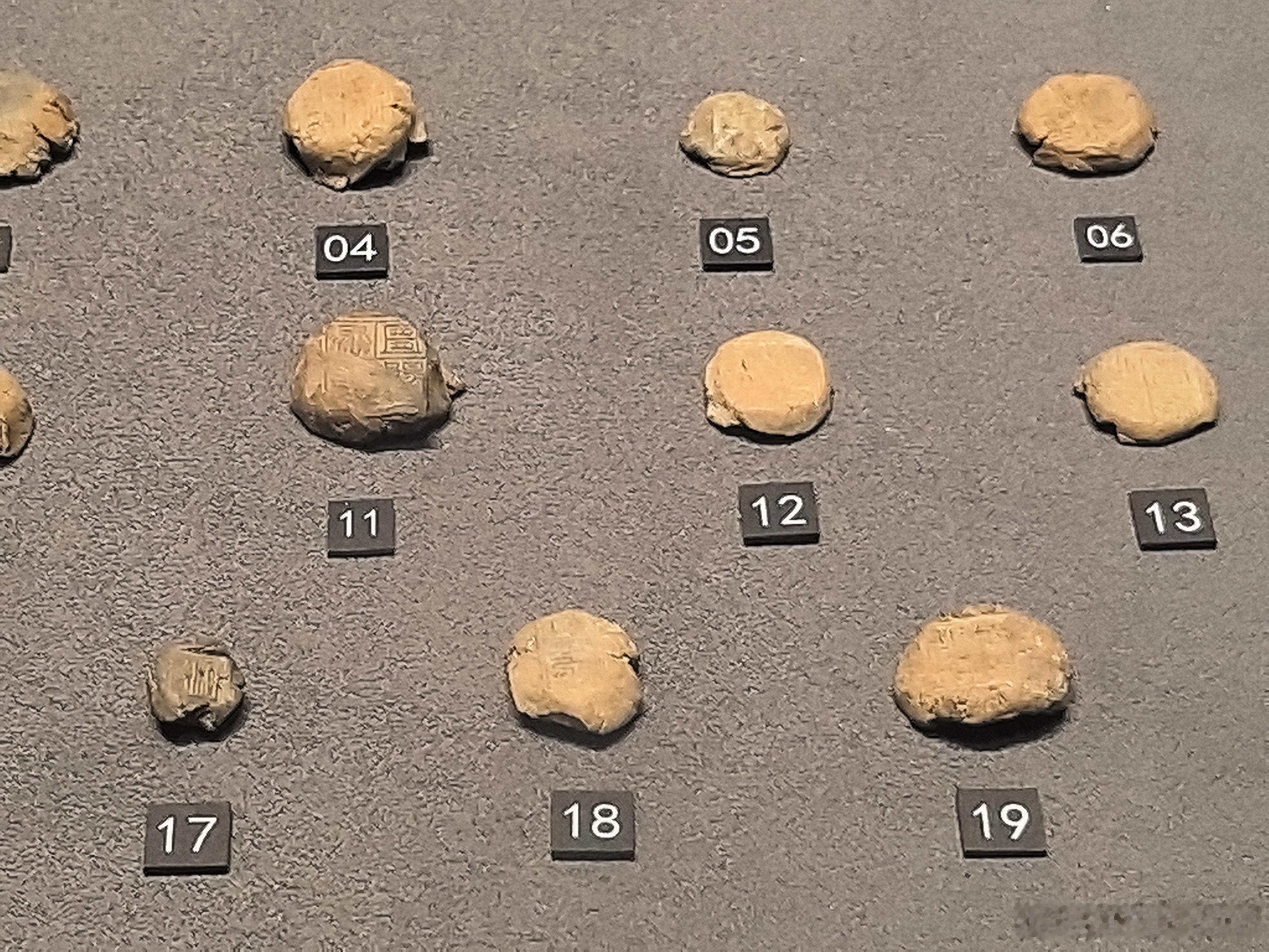 有位老师曾用美不胜收来形容封泥,陕历博见到了实物,确实极为震撼。封泥是用于封缄文书并加盖印章的泥质文物,流行于秦汉时期,通过钤盖玺印确保文书传递完整性。秦汉时期官方文书封缄时,将泥团置于绳结处钤印烘烤,收件人需查验泥封完好方能启封。这个方法其实现在还在使用,档案袋原理大同小异。封泥的发掘,对研究秦代官制非常重要。