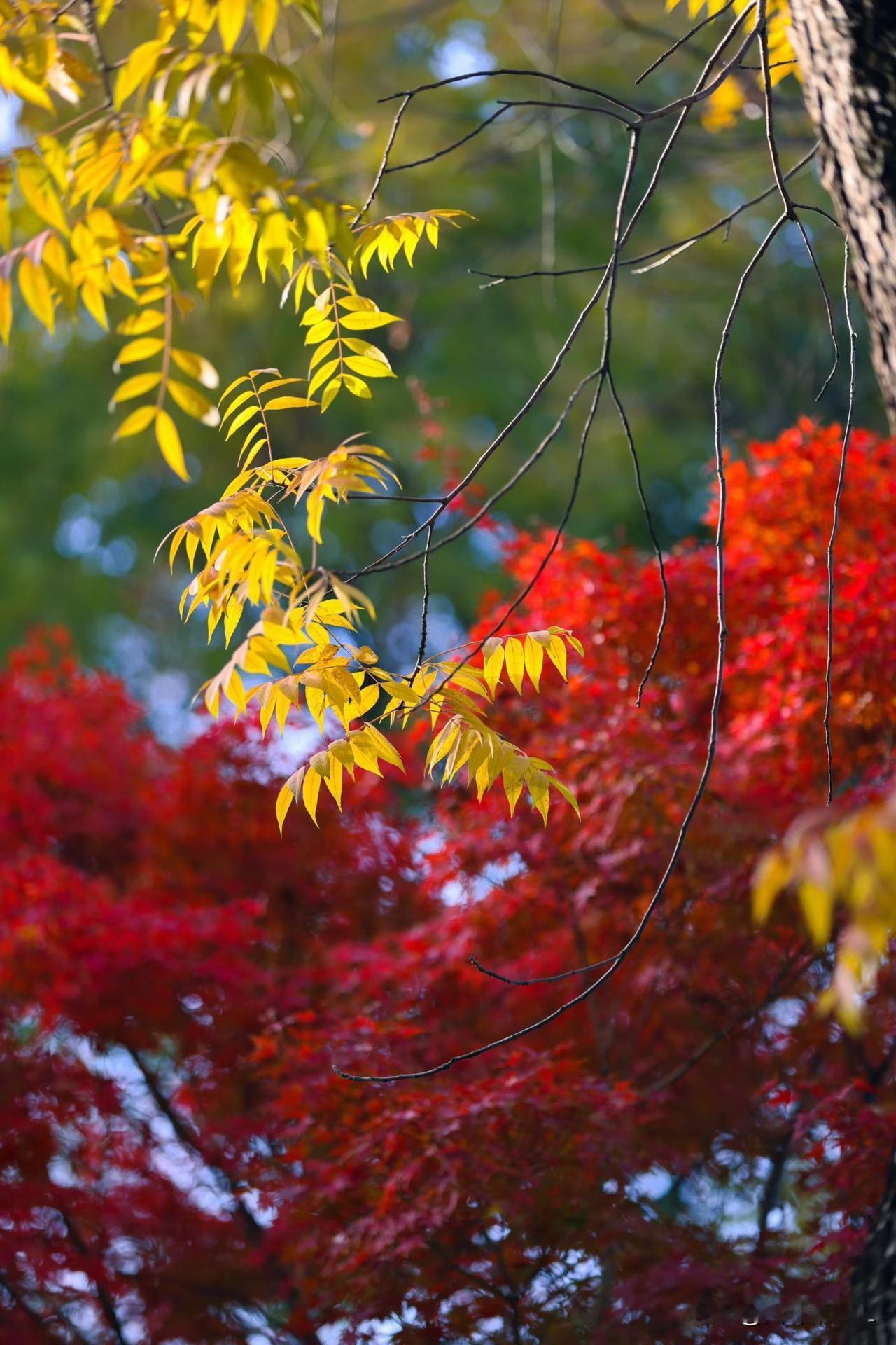 冬日暖阳下,红彤彤的树叶格外漂亮。