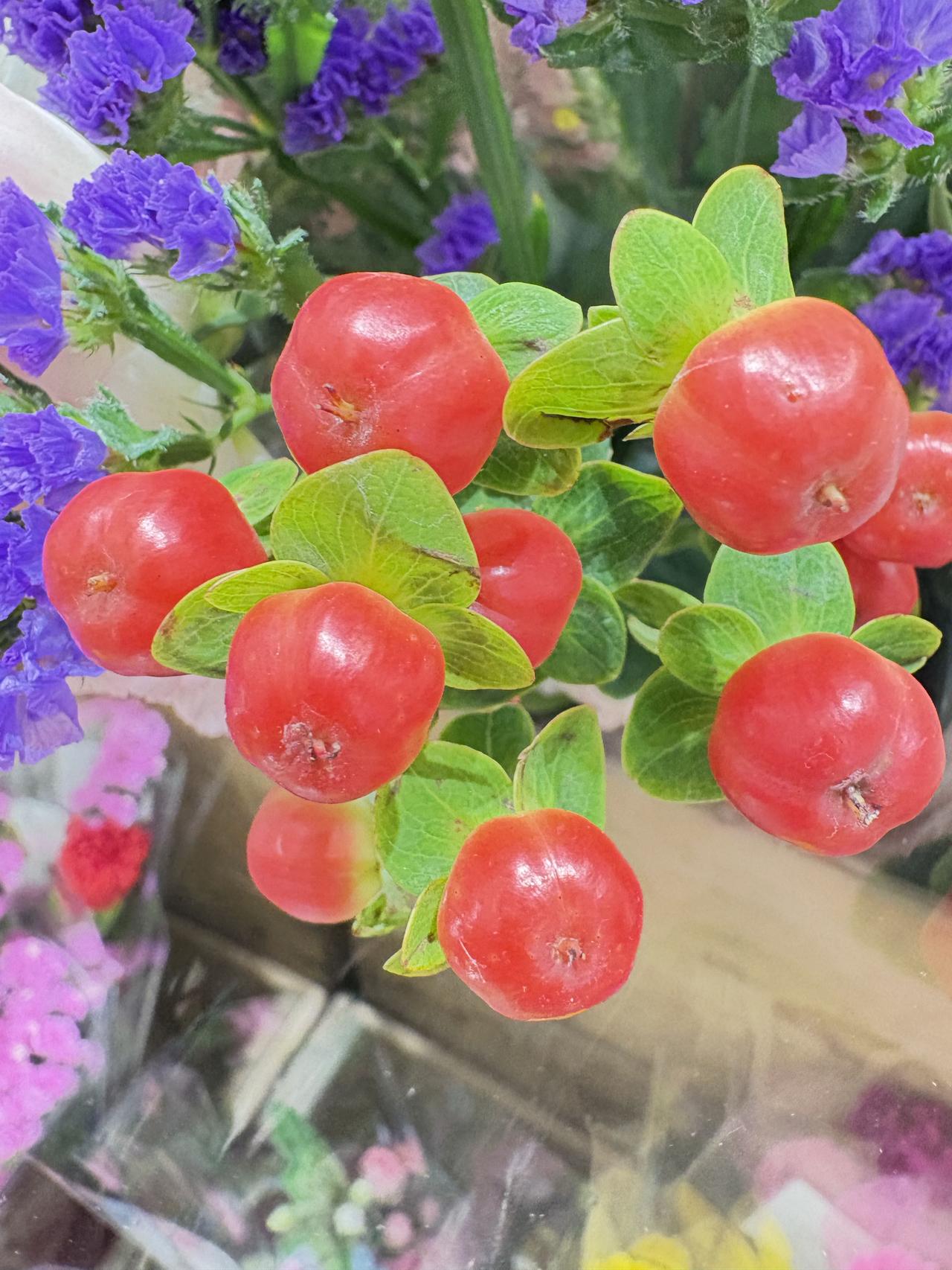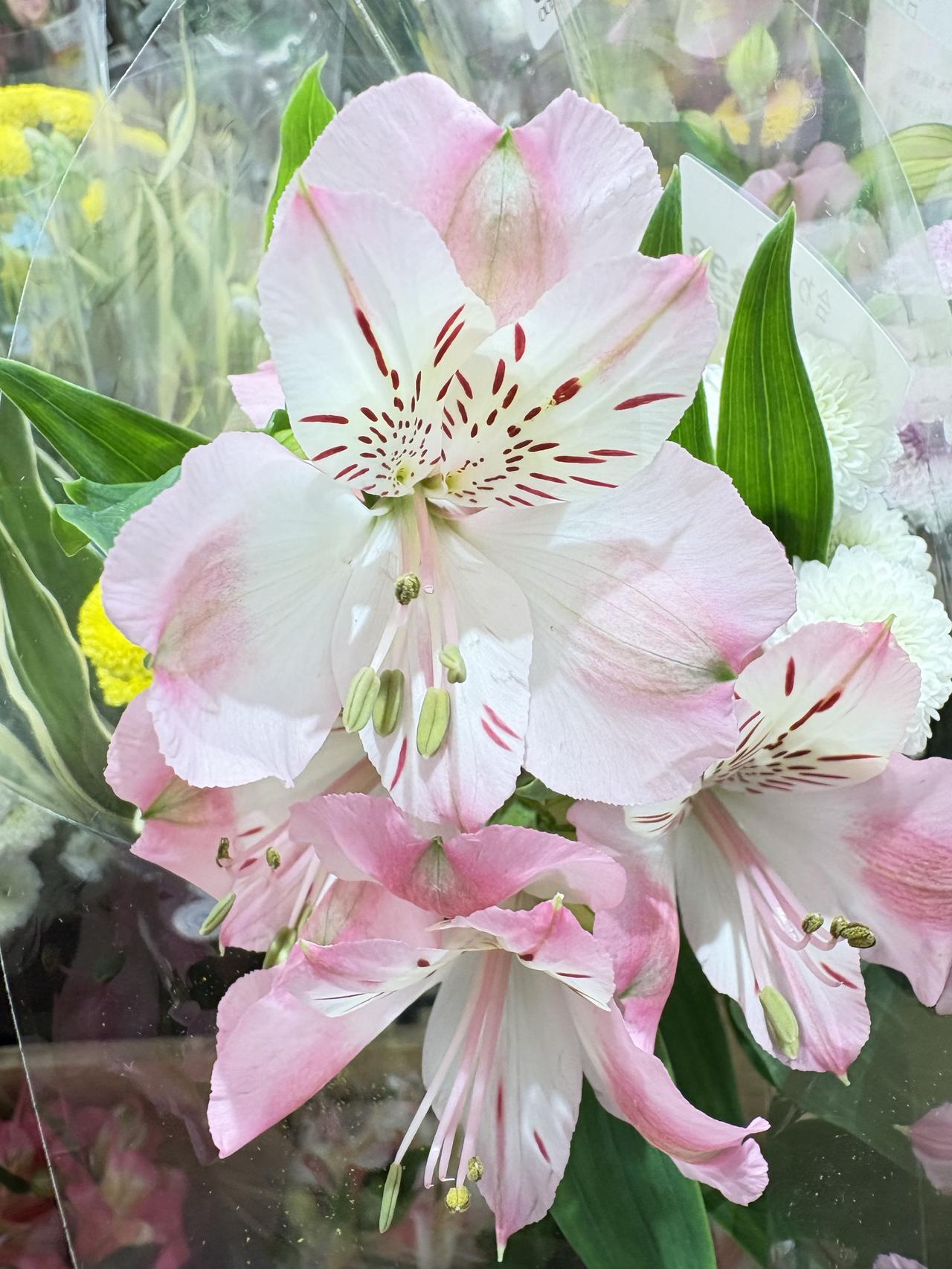 分享一张隨手拍的花一品红、百合水仙、勿忘我。