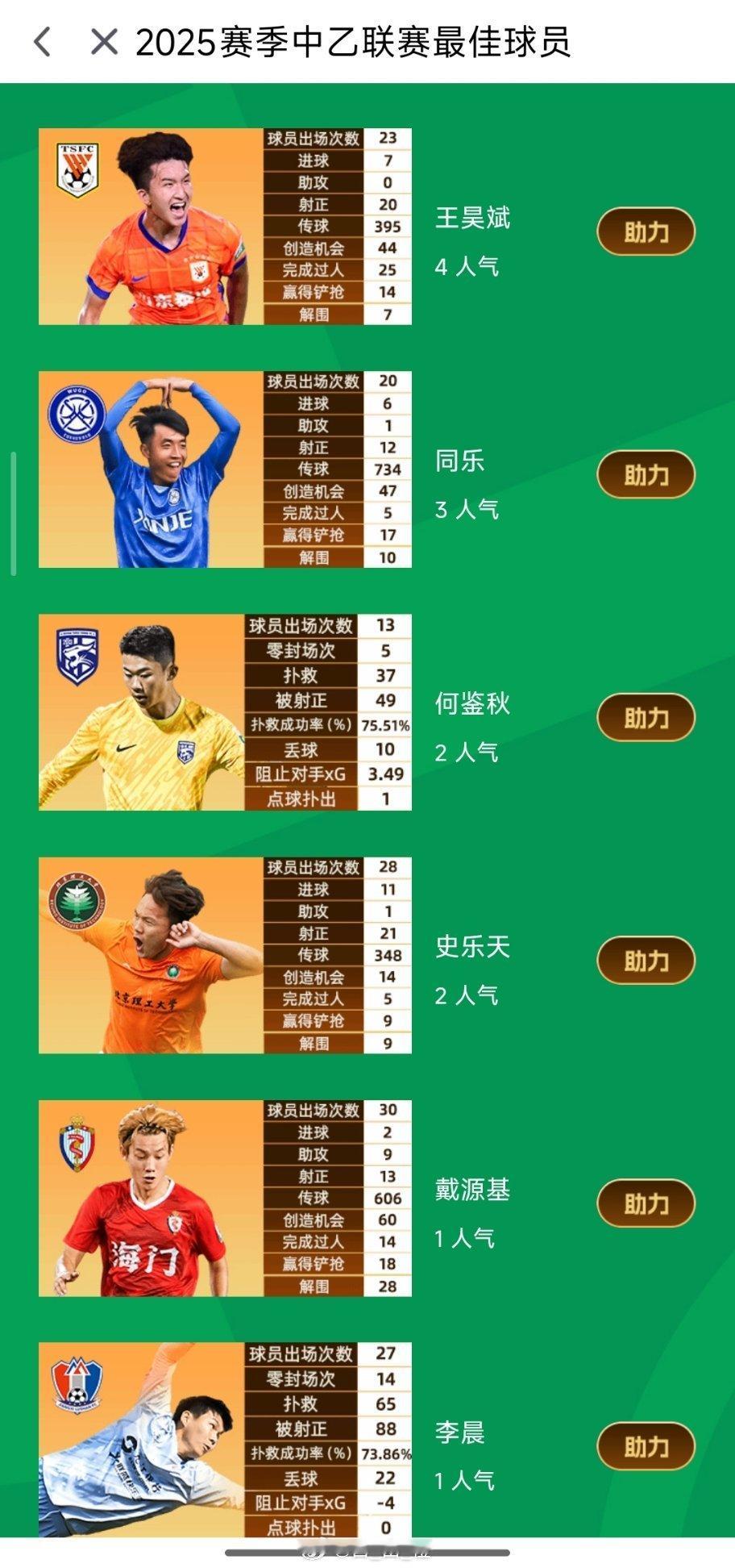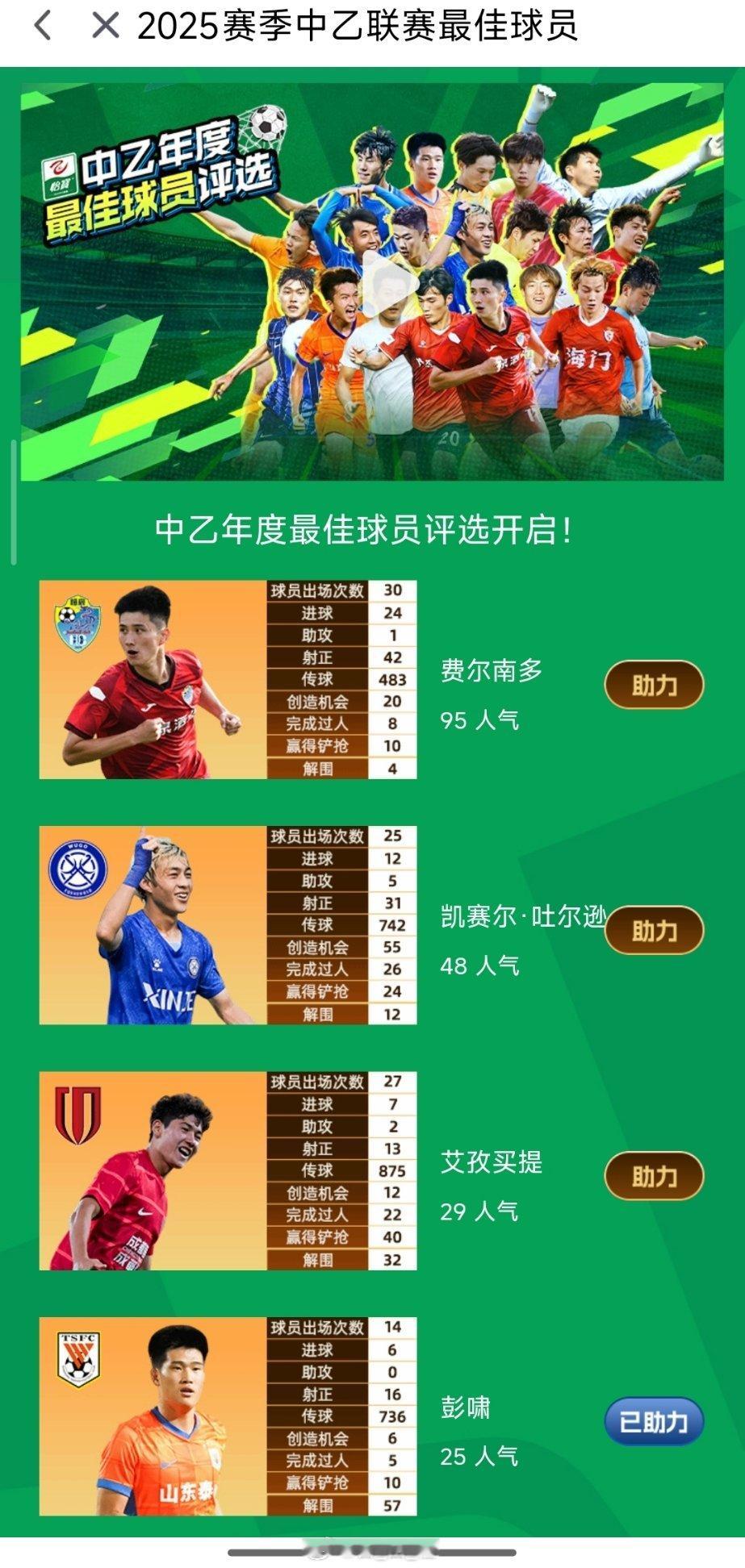 彭啸、王昊斌入围2025赛季中乙最佳球员评选。自由橙山东泰山