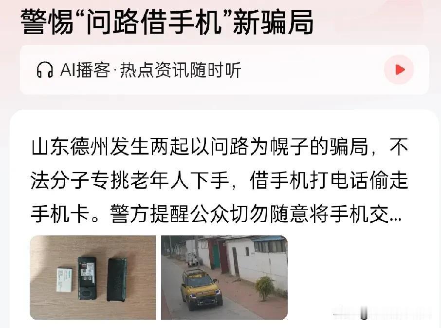 专找老人下手,问路借手机, 偷偷拿走手机卡 诈骗电话 越来越隐蔽 记得以前在深圳车公庙, 路上碰到借手机的学生,谎称自己没钱,没电话。 手机交给他,给家里打电话, 一转身 人不见了 一连好几个同事都这样被偷走了手机,现在转偷手机卡,贼聪明 手机难道不值钱吗?电话骗局 租手机骗局 无人接听的诈骗 陌生人问路骗局 丢手机骗局 电话陷阱