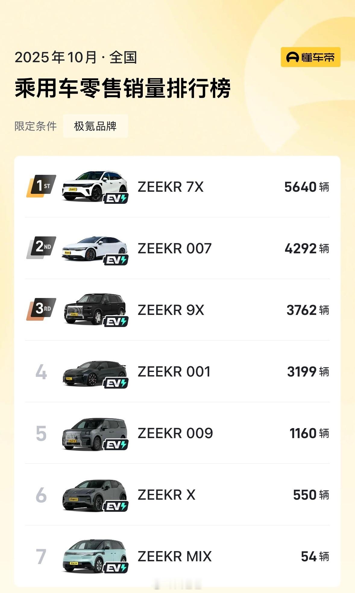 昨天我说领克猛,是基于和极氪对比的基础之上领克月销5000+的车型居然有4台而极氪只有7X了,001不负当年之勇啊,不过9X这一波挺猛,还有很多车主在等Hyper版本。极氪新能源汽车