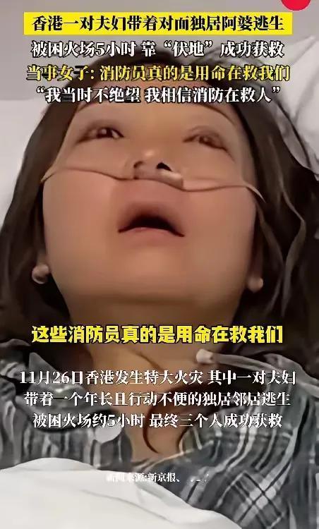 日常递来的一碗热饭,竟会成为生死关头的救命符?香港这场突发火灾里,张女士夫妻的选择,真的戳中了人心最软的地方。 火灾来袭时,浓烟已经呛得人睁不开眼,热浪差点把人掀翻。可张女士第一反应不是自顾逃生,而是想起对面独居的阿婆——那个总给她留热饭、有难处就找她帮忙的老街坊。 夫妻俩撞开房门,拉起昏沉的阿婆就往外冲,眼看浓烟封路,张女士立刻摁住阿婆的头:“快趴下!” 三人贴着地面挪到卫生间,用湿衣服捂住口鼻,在恐惧里硬撑了五个小时,直到救援赶来。 很多人说这是好人有好报,其实这更是善意的双向奔赴。阿婆平日里的点滴温暖,换来了危难时的不离不弃;张女士的勇敢善良,也让这份邻里情超越了血缘。