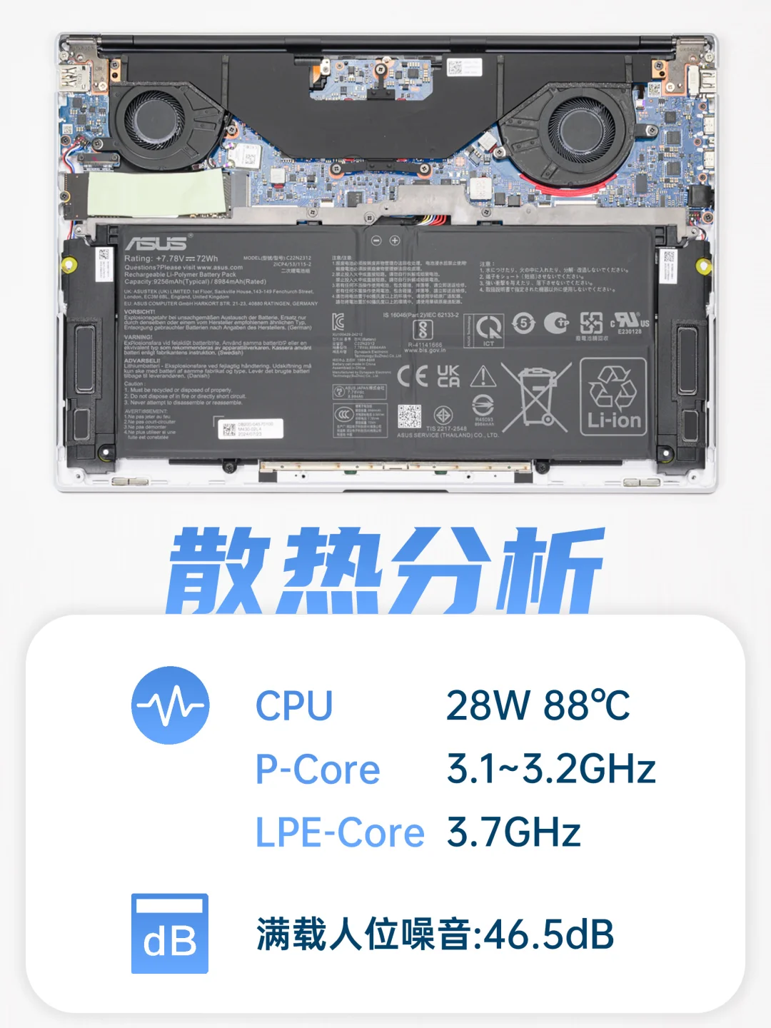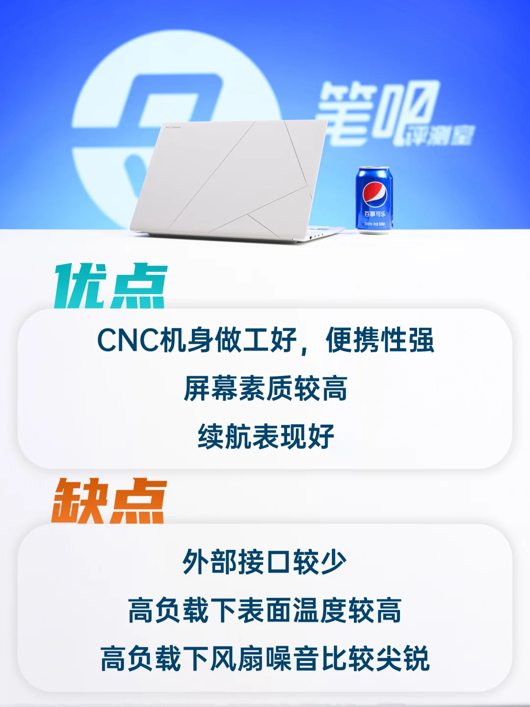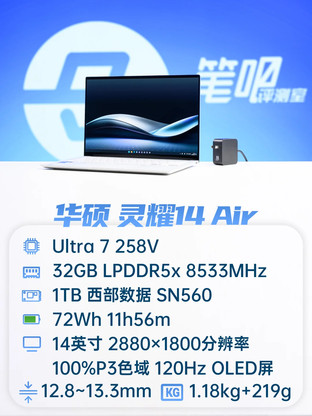 从模具本身的角度思考,灵耀14 Air只是一款“优秀的花瓶”:为了轻薄精致,它压缩了厚度、限制了电池容量、牺牲了性能释放,当年如果没有LNL处理器,只用MTL处理器的话,那这台电脑基本上就被判死刑了。