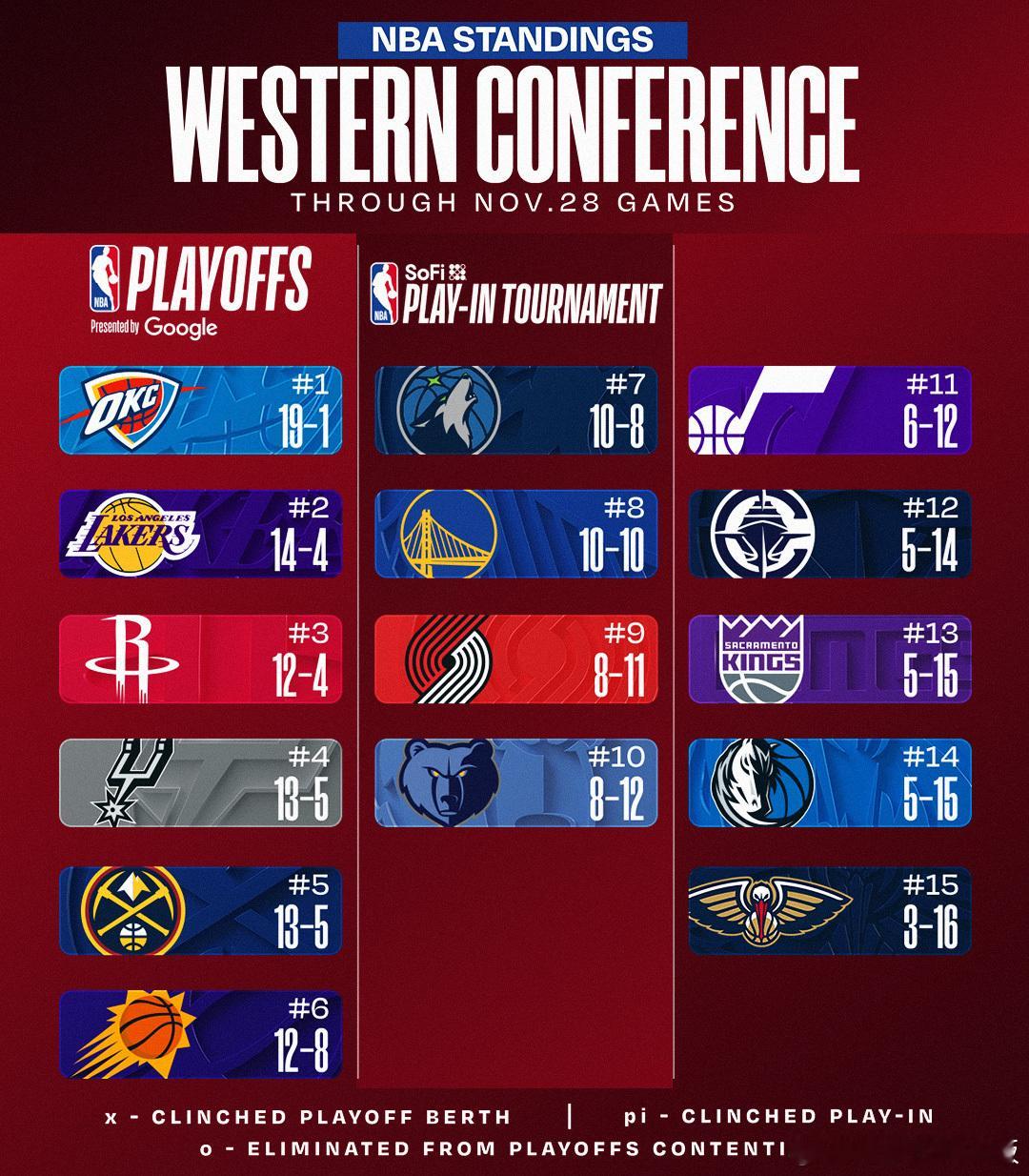 NBA杯小组赛结束,目前东西部排名📊活塞遭遇两连败,字母复出难阻雄鹿7连败;雷霆豪取11连胜,湖人6连胜继续巩固第2,马刺排名反超掘金,快船3连败。杯赛1/4决赛对阵图已出,12月10日东部率先开战🔥新赛季篮不住