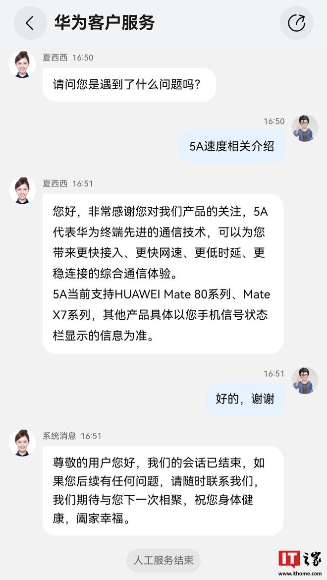IT之家向华为客户服务询问获悉,5A代表华为终端先进的通信技术,可以为用户带来更快接入、更快网速、更低时延、更稳连接的综合通信体验。