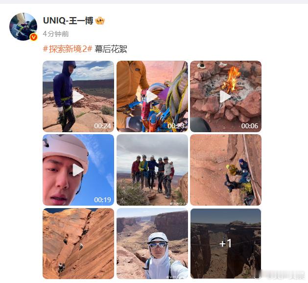 惊喜掉落!王一博分享《探索新境 2》幕后花絮,岩羊营业可爱值超标,花絮里的他灵动又认真,这波营业直接甜到心坎里 王一博探索新境2幕后王一博幕后花絮九宫格