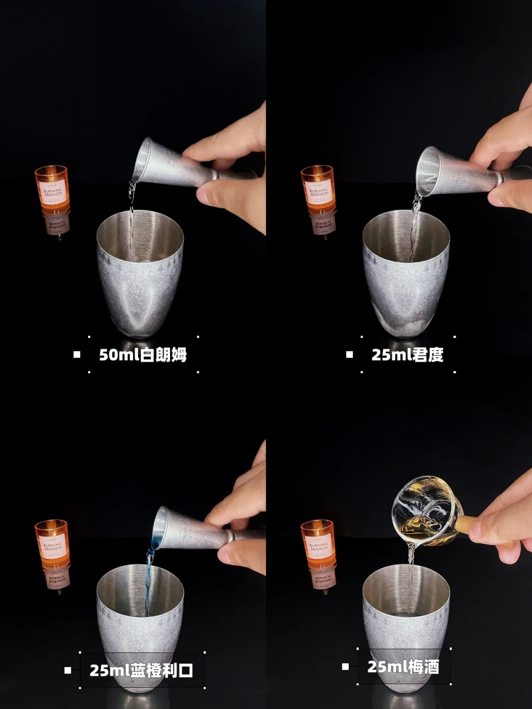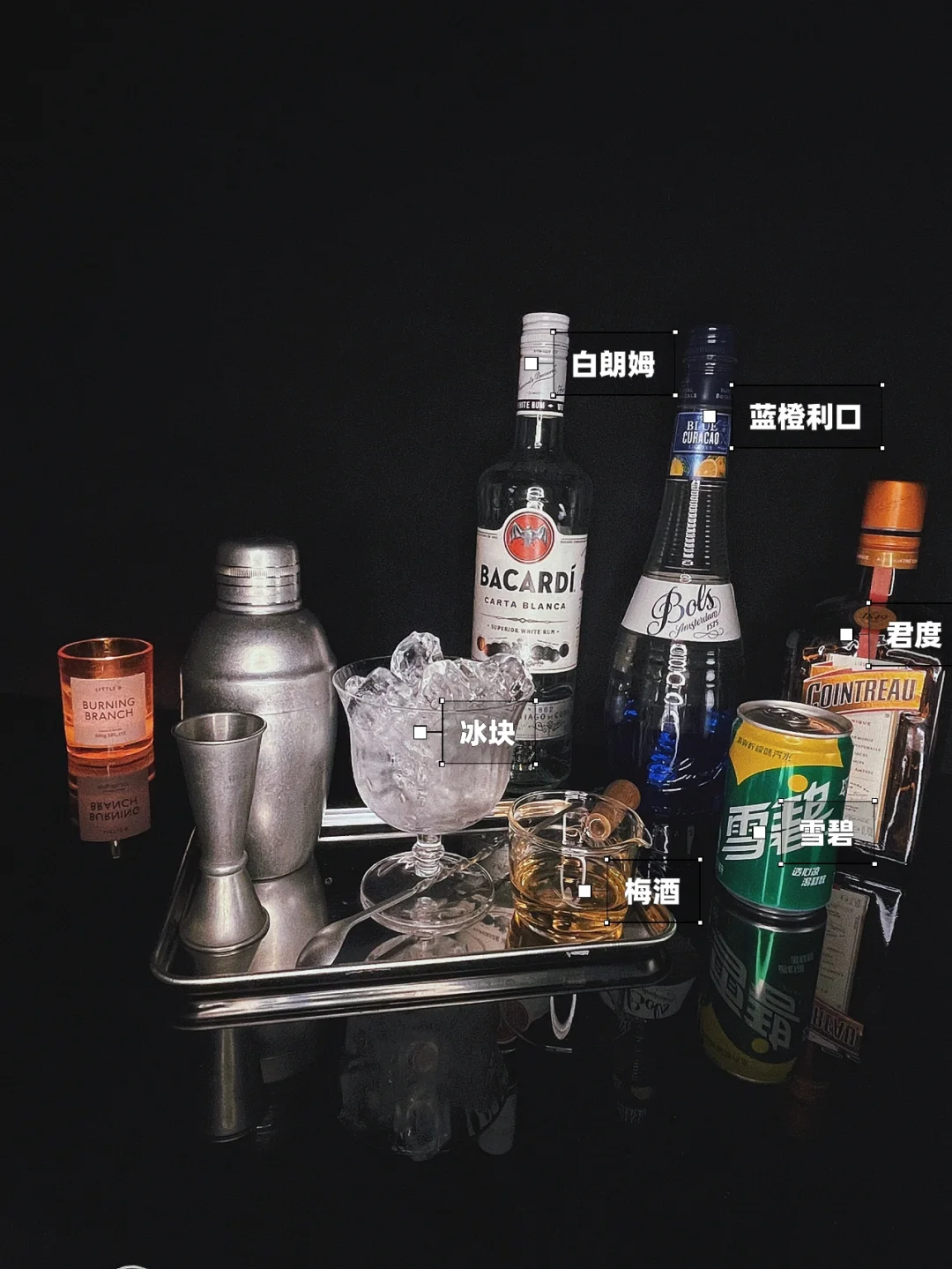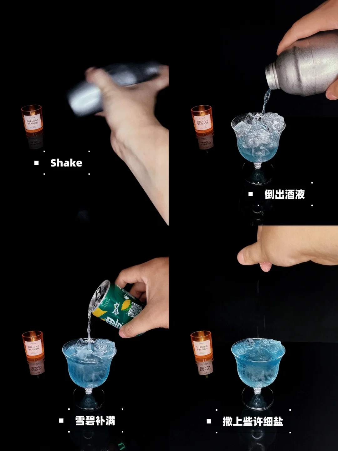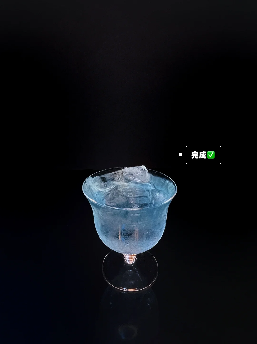 💧”海上夜雨“这款特调与名字联想,用蓝橙利口有了蓝色调感,百加得与君度、青梅酒的调和,使他更具厚烈与甜涩感,加入碳酸饮料,多了一分甜度与清凉感,最后撒入食盐增添了咸感,体验海上夜雨中夹带着湿咸感受。