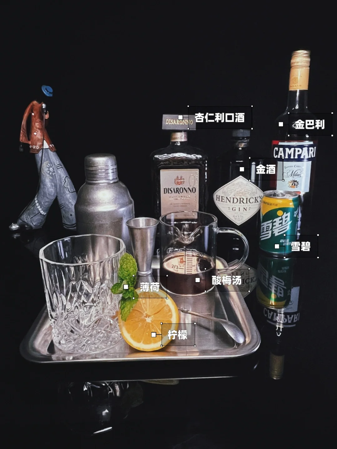 浓厚的杏仁味利口酒不经想起“教父”这款经典鸡尾酒,搭配金巴利独有苦感风味,整体十分融洽,脑海中浮现有个男子西装革履持枪邪笑qinshou画面(哈哈哈哈开始YY了…..[暗中观察R]