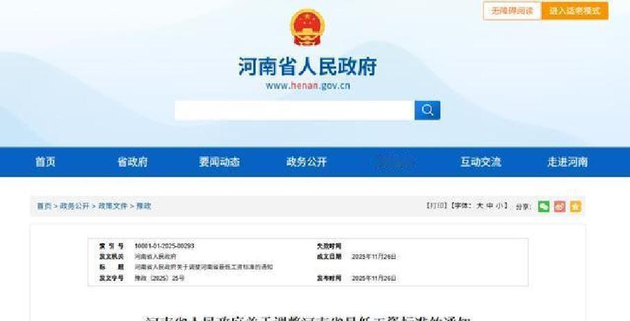 河南打工的兄弟姐妹们,注意了!从今年12月1号起,咱河南的最低工资标准要正式上调了,这可是实打实的福利,帮大伙儿兜底收入,让日子过得更踏实点。分区域郑州这样的发达地带,全职每月起步2350块,小时工23块;二类地方像洛阳周边,月薪2150,小时21.1;三类县城乡下,月2000,小时19.6。比起去年,这涨幅可不小,一类涨了10.5%,二类11.8%,三类直奔13.3%,全省平均超10%。 这标准针对全职和兼职都管用,但里面扣了个人那份社保和公积金,单位还得额外给加班费、夜班补贴、高温津贴啥的,不能混着算。简单说,就是保底工资干净利落,额外福利单独发,劳动者权益更有保障。 为啥现在调?河南经济这两年牛气冲天,去年GDP稳居中西部第一,城镇职工平均工资也破了7万大关,消费市场热火朝天。调工资不光拉动内需,还能留住人才,避免劳动力外流。我这步棋走得稳,不仅让底层工人多点钱花,还刺激企业优化管理,升级产业。长远讲,河南作为人口大省,这政策能稳住民生底盘,推动高质量发展。 企业老板们得赶紧盘算成本,员工们也该多学技能,争取多赚那份超出保底的。这涨薪潮来得及时,真正接地气,值得点个赞