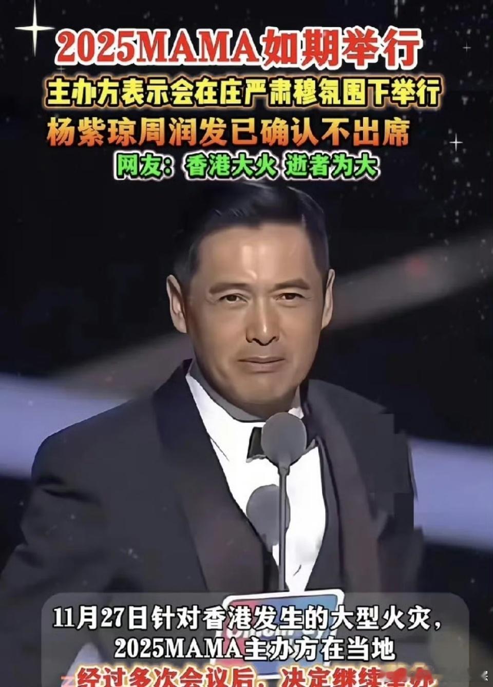 周润发参加MAMAMAMA问卷将香港台湾设为国籍之前不是说不出席了吗?怎么在mama介绍出席艺人的时候出现了周润发?