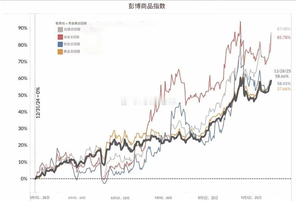 2025年,黄金、白银和铂金等贵金属价格将飙升,远超股票和加密货币的涨幅。通胀对冲、央行购金、货币贬值以及债务担忧将加速资本流入。过去十年,黄金上涨约四倍,但在上世纪70年代的高通胀和经济衰退时期,其价值曾上涨了20倍。普遍认为,此次上涨并非泡沫,而是长期周期的开端。比特币,大概率补涨?
