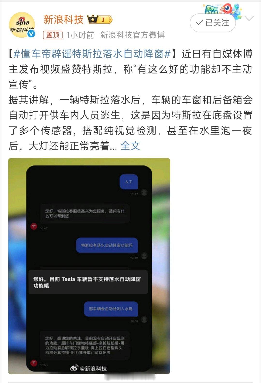 特斯拉落水自动开窗?纯属谣言!官方客服都否认了,懂车帝也实测过,车里全是水,门都很难开,更别说自动开窗了。这种攸关性命的信息,千万别信网传,得看官方和实测怎么说~懂车帝辟谣特斯拉落水自动降窗