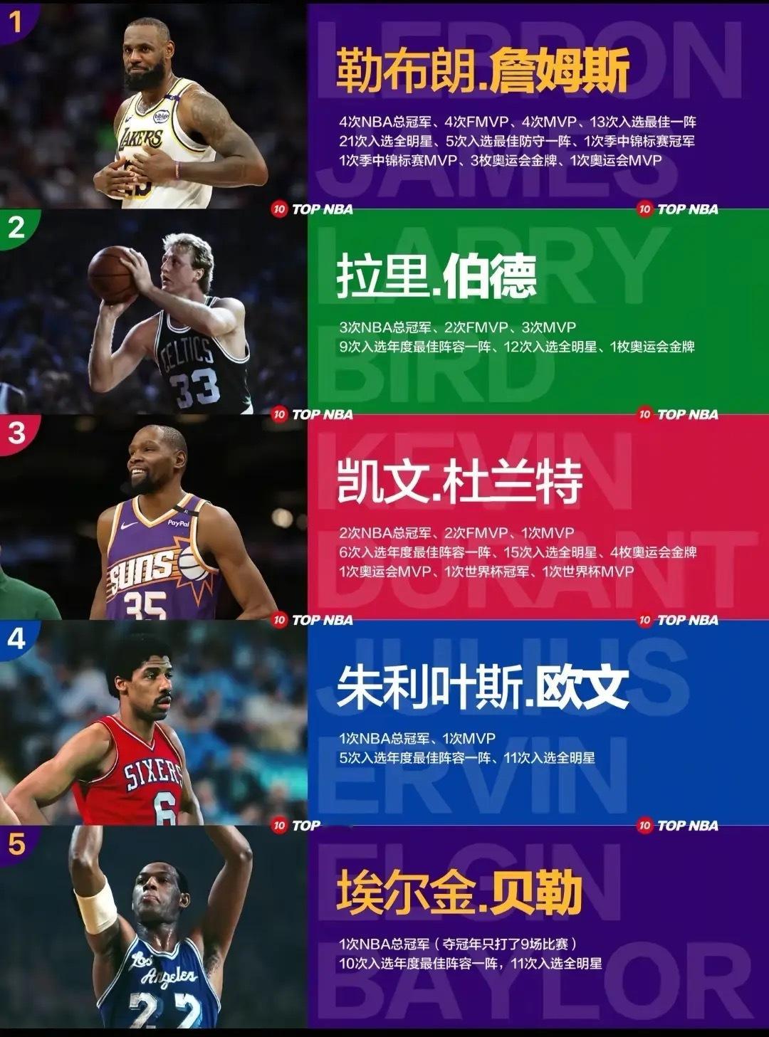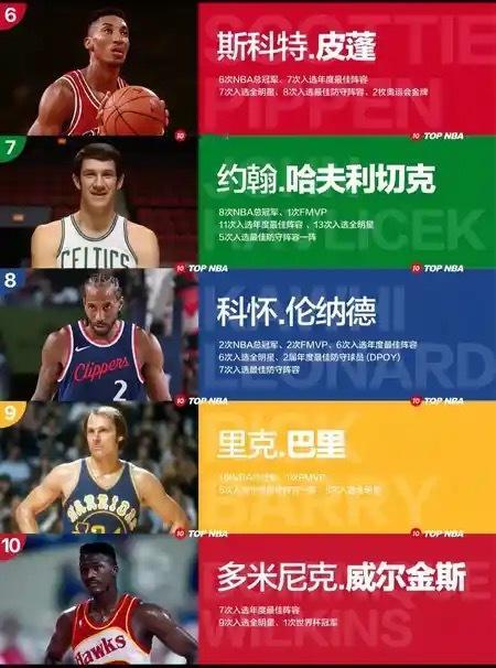 十大传奇小前锋排名,皮蓬仅能排在第6位,你认同吗?