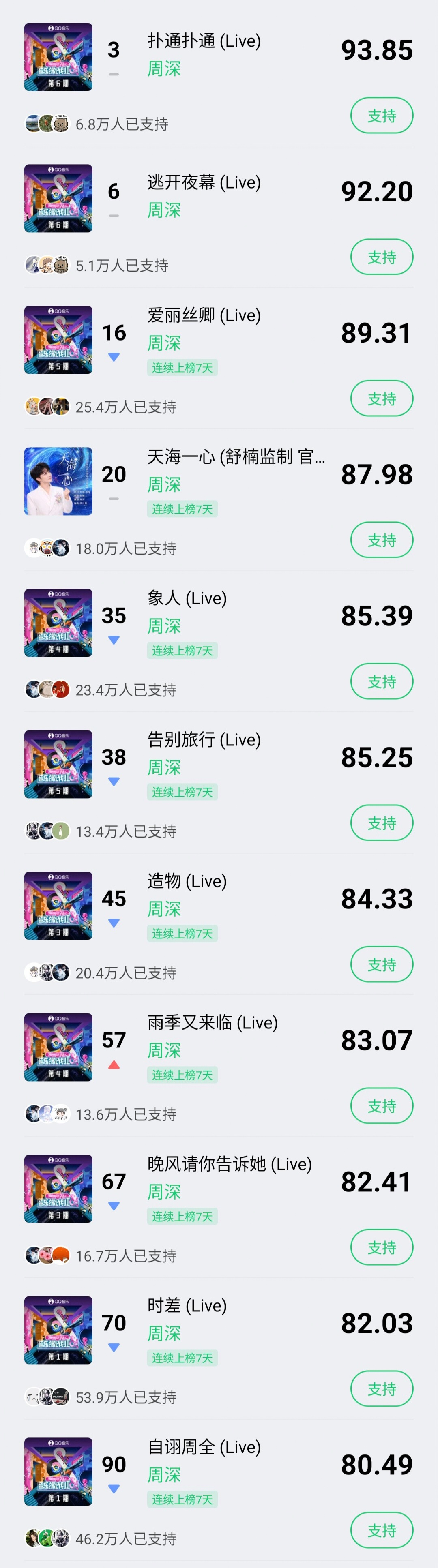 周深 📣 11.29 巅峰潮流 📣米米们晚上好每歌做6个动作路径:Q音-乐馆-排行-潮流巅峰✅《扑通扑通(live)》✅《逃开夜幕(live)》✅《爱丽丝卿(live)》✅《天海一心》✅《象人(live)》✅《告别旅行(live)》✅《造物(live)》✅《雨季又来临(live)》✅《晚风请你告诉她(live)》✅《时差(live)》✅《自诩周全(live)》完成『支持』让更多人听到深深