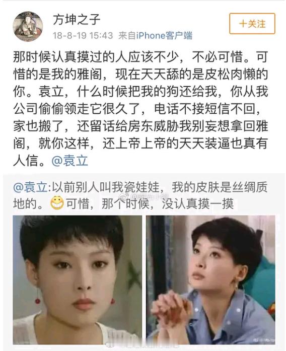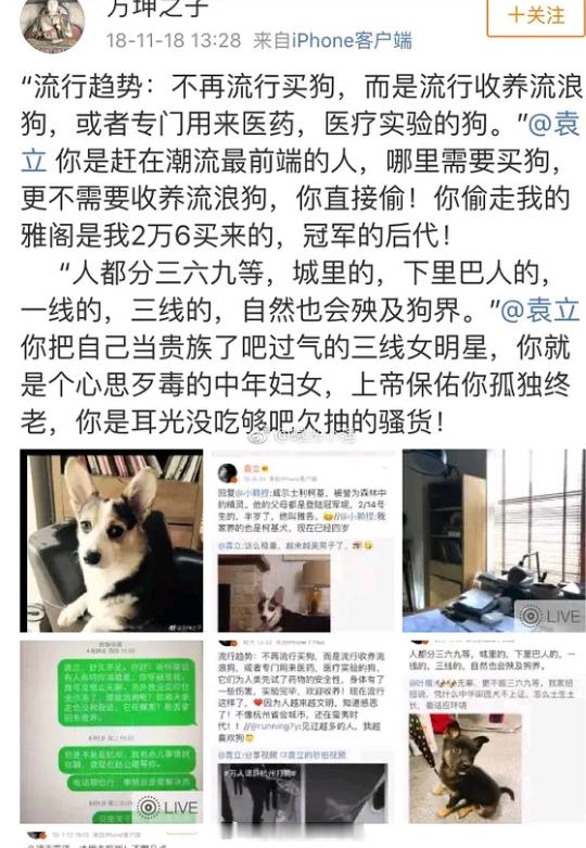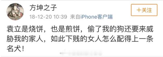 关于袁立偷狗的前男友,多次在微博大骂袁立。