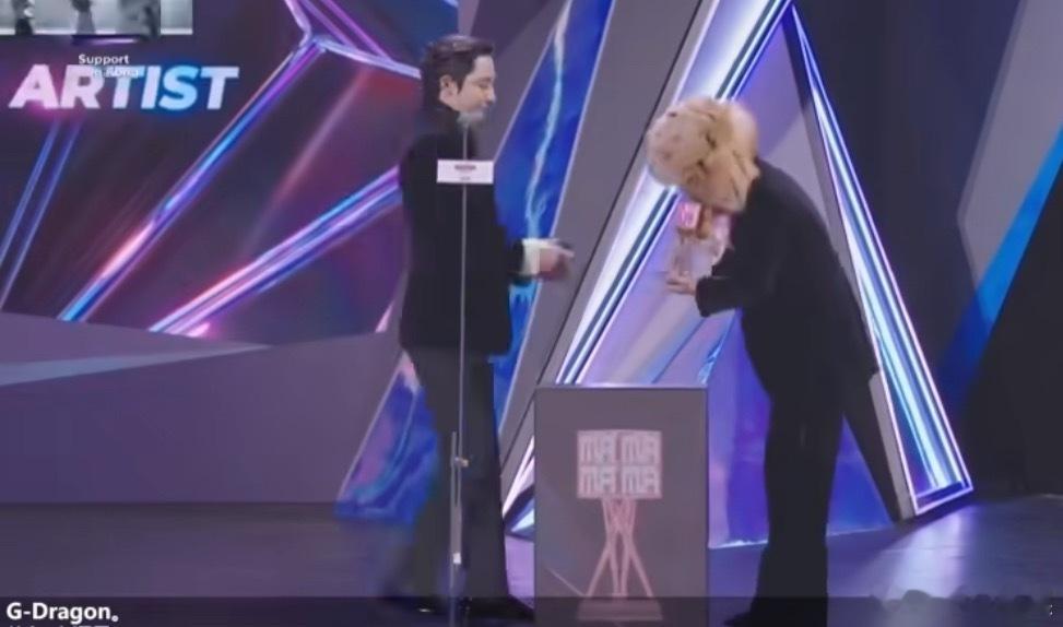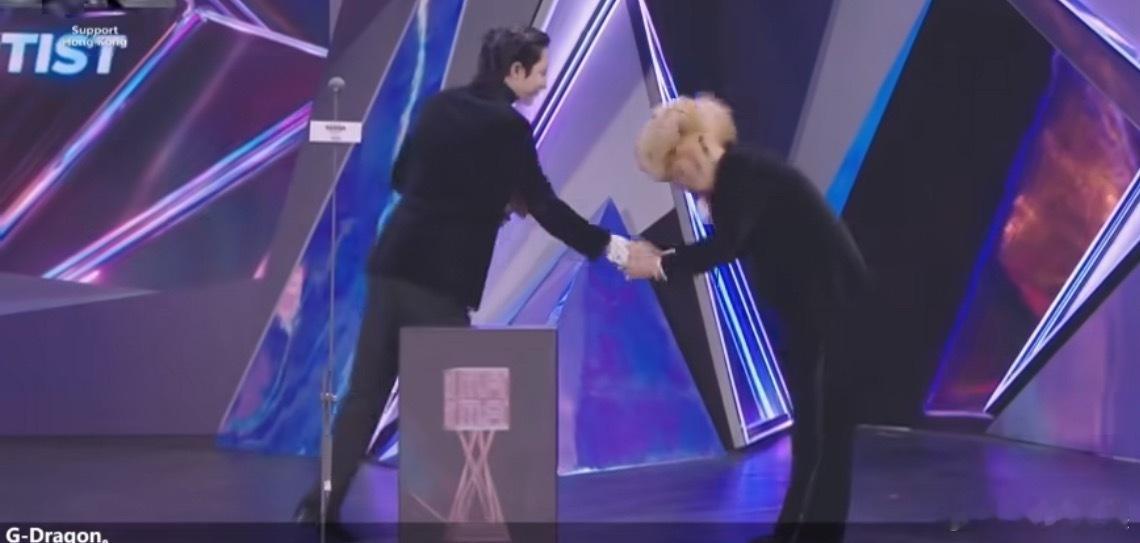 李洙赫给权志龙颁奖好好笑啊,明明熟的不能再熟了,上台领奖还要演这么一套丝滑小连招,能憋住笑也是很厉害了