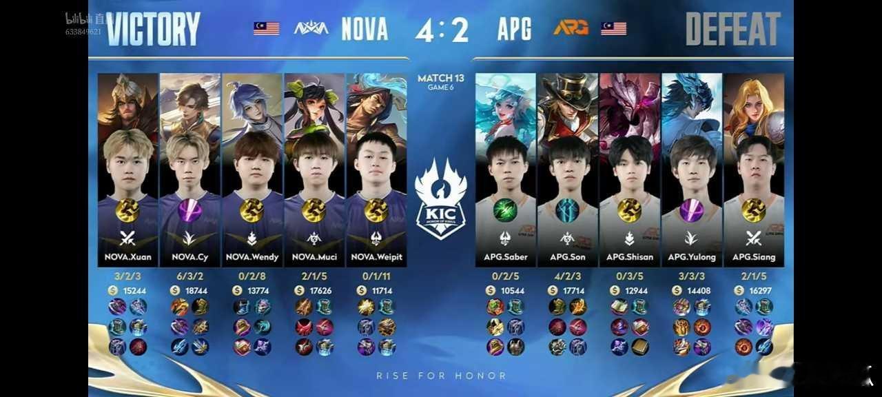 瓜友速报 KIC败者组决赛Nova4比2战胜APG,即APG确认全球赛道3号位,挑杯第一轮将对战青训破军