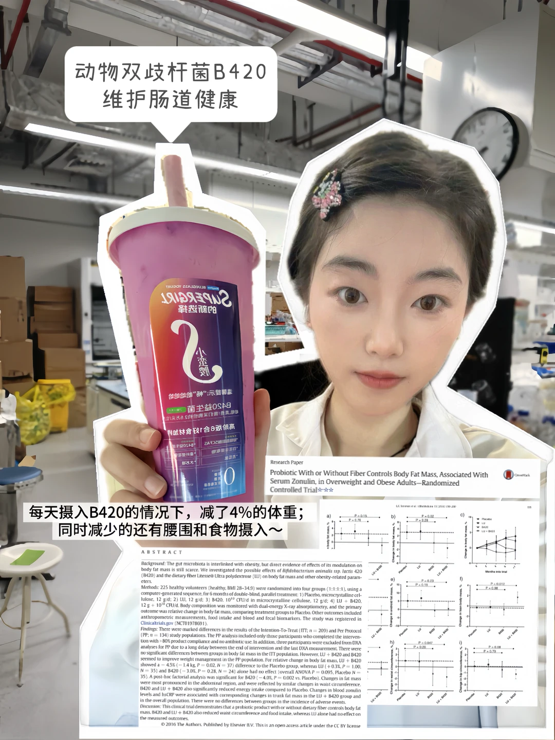 动物双歧杆菌B420,可以控制体内脂肪含量,促进肠道蠕动;